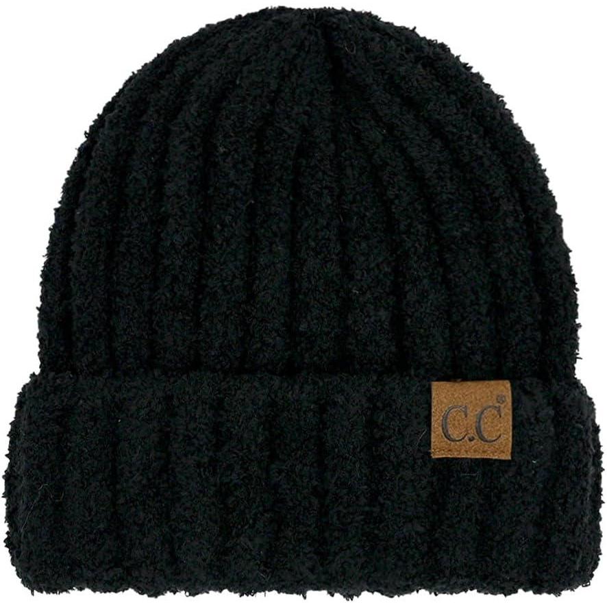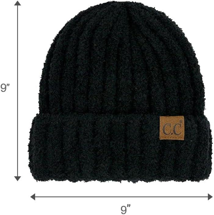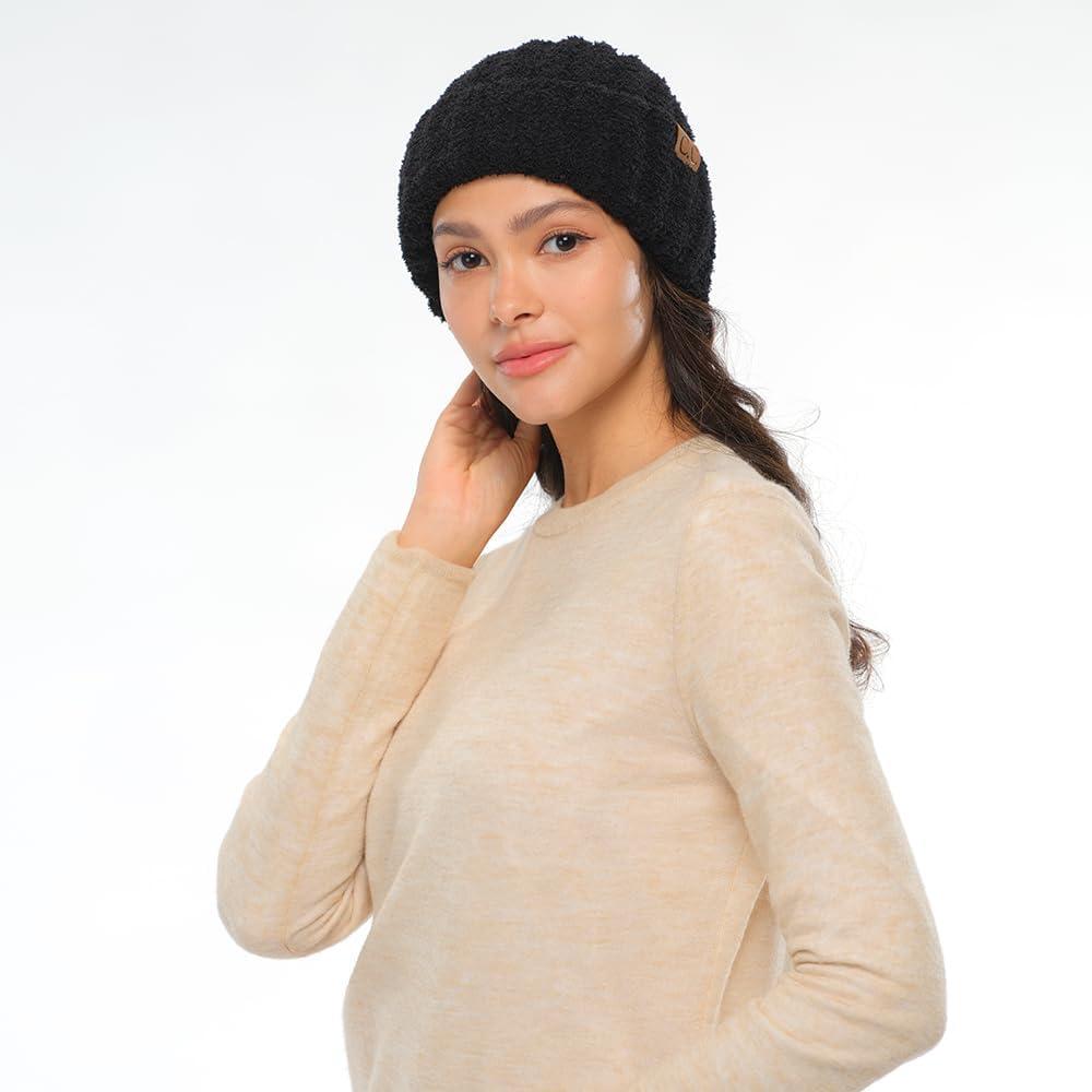 C.C Fuzzy Beanie for Women Unisex - Acrylic Stretchable Soft Warm Knit Winter Skully Hat(Acrylic-black)
