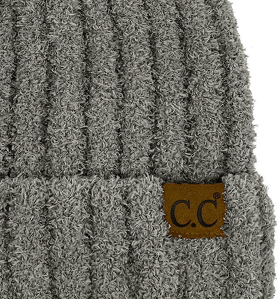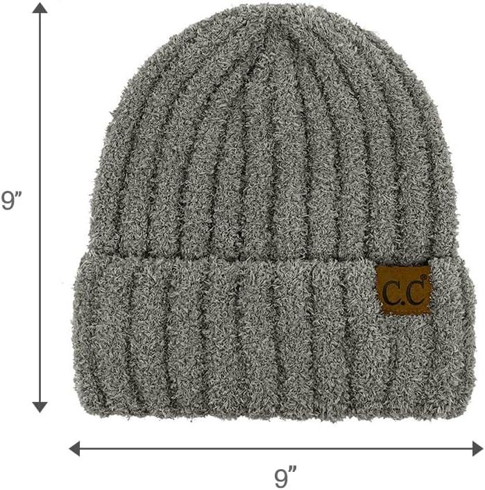 C.C Fuzzy Beanie for Women Unisex – Acrylic Stretchable Soft Warm Knit Winter Skully Hat(Acrylic-lt. Grey)
