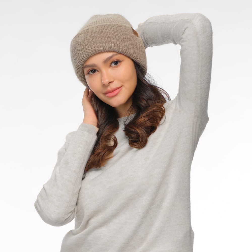 C.C Fuzzy Beanie for Women Unisex – Acrylic Stretchable Soft Warm Knit Winter Skully Hat(Angora-taupe)