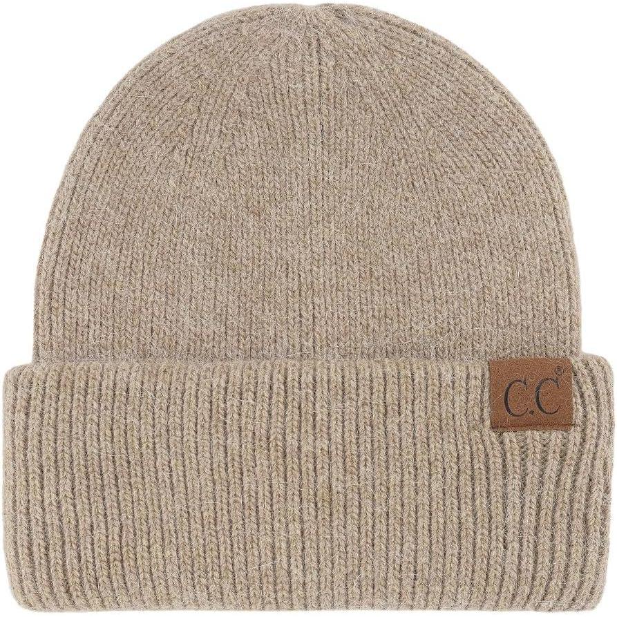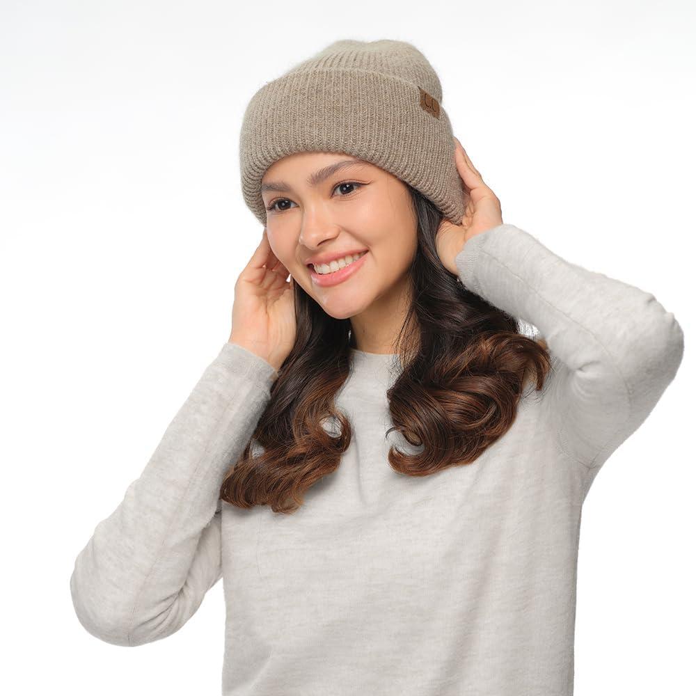 C.C Fuzzy Beanie for Women Unisex - Acrylic Stretchable Soft Warm Knit Winter Skully Hat(Angora-taupe)