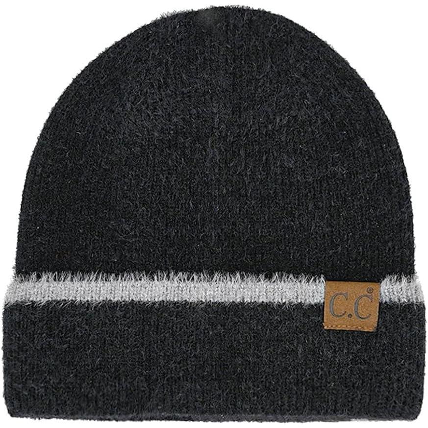 imageCC Fuzzy Beanie for Women Unisex  Acrylic Stretchable Soft Warm Knit Winter Skully HatFeather Yarnblack