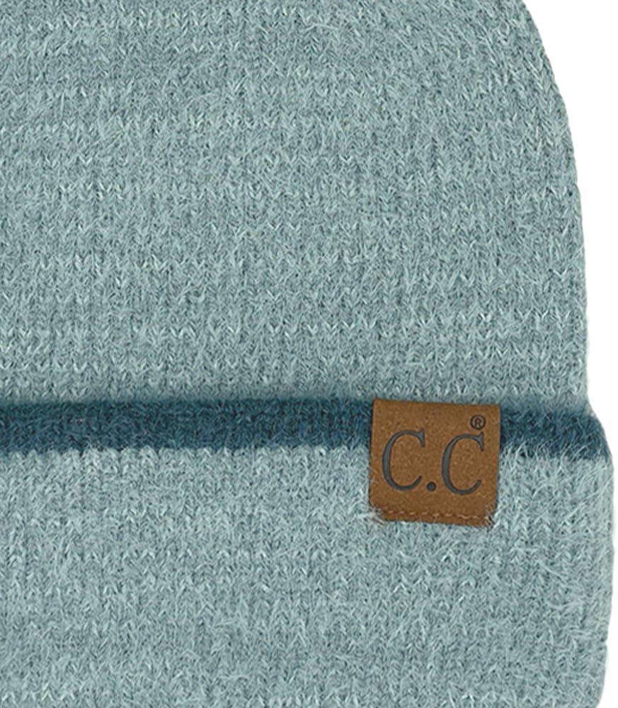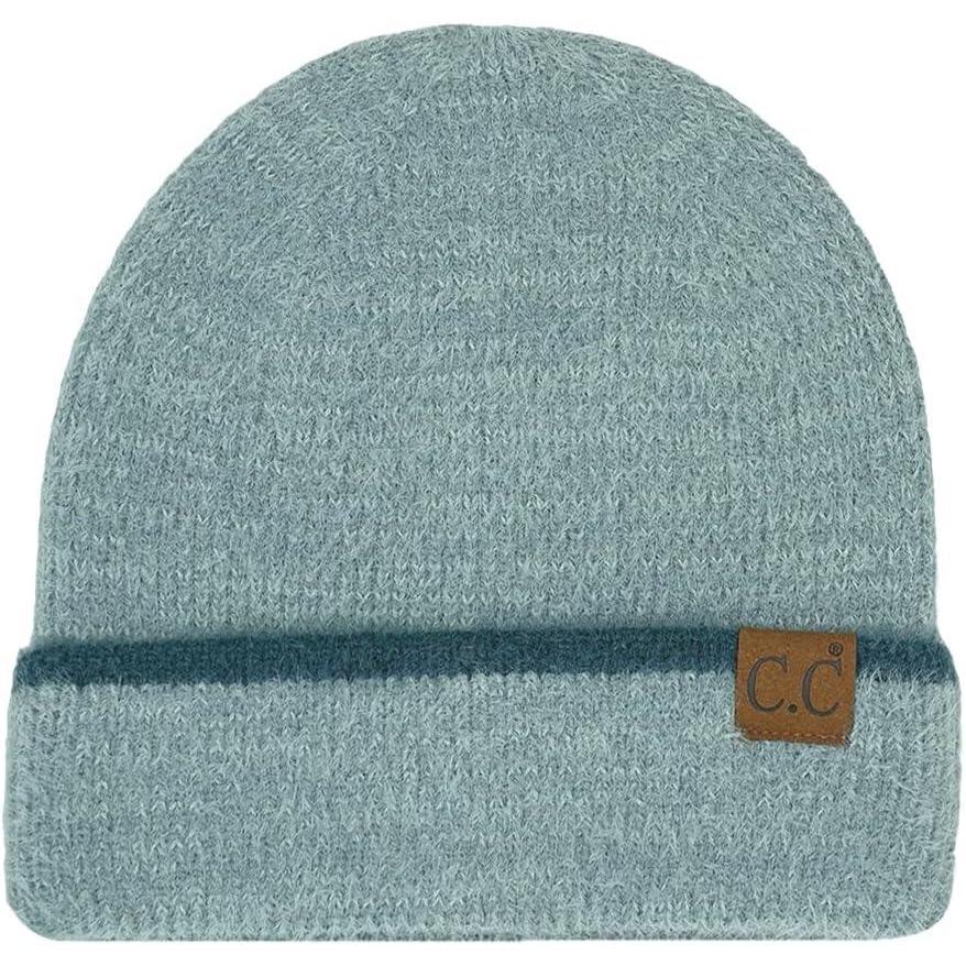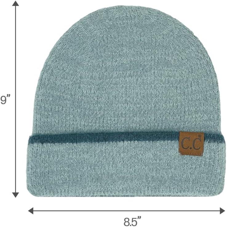 C.C Fuzzy Beanie for Women Unisex - Acrylic Stretchable Soft Warm Knit Winter Skully Hat(Feather Yarn-dusty Blue)
