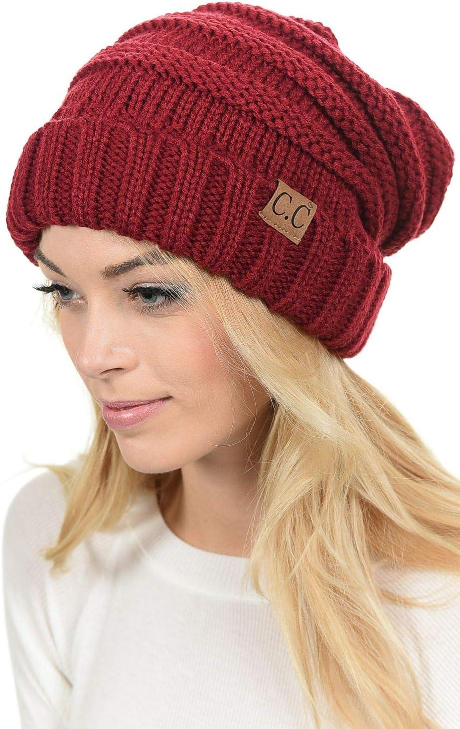 C.C Hat-100 Oversized Baggy Slouch Thick Warm Cap Hat Skully Cable Knit Beanie(Burgundy Chenille)
