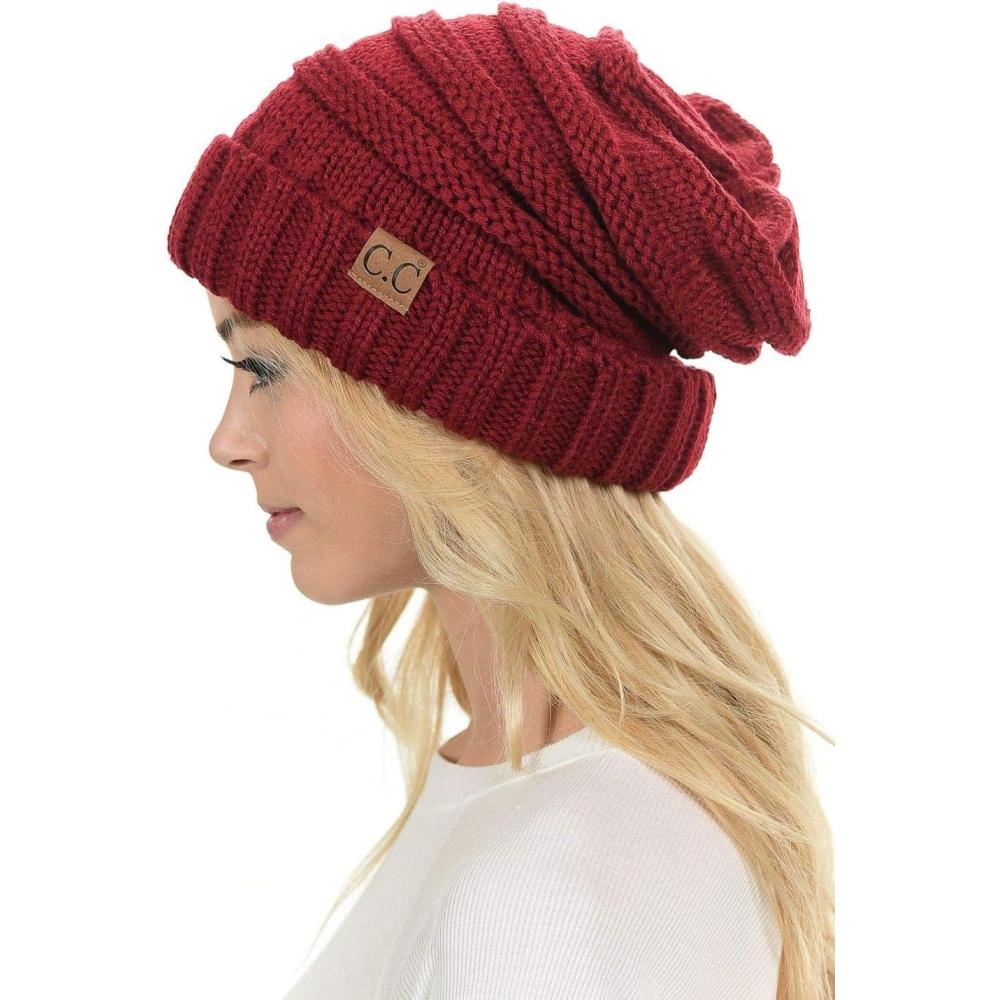 C.C Hat-100 Oversized Baggy Slouch Thick Warm Cap Hat Skully Cable Knit Beanie(Burgundy)