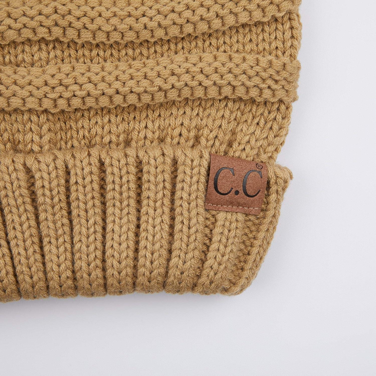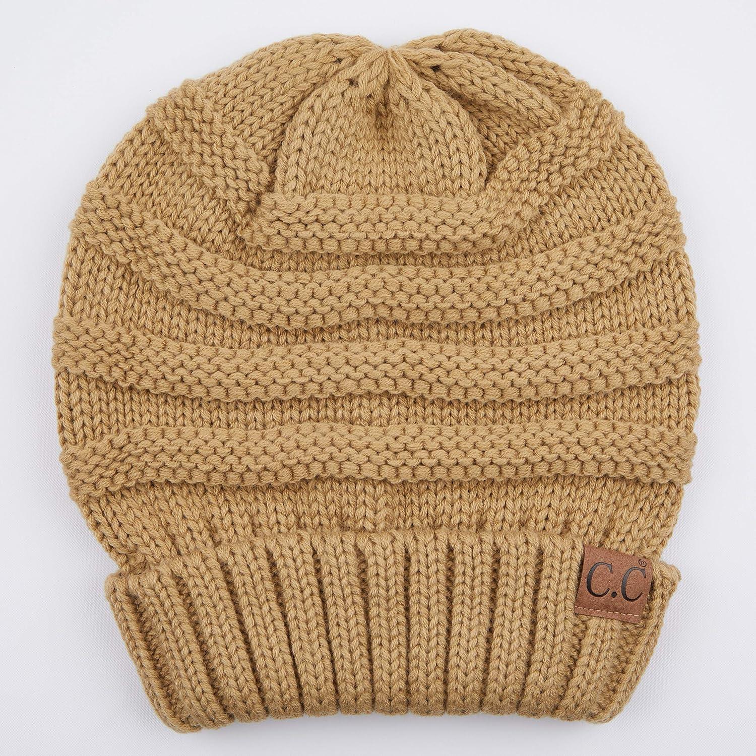 C.C Hat-100 Oversized Baggy Slouch Thick Warm Cap Hat Skully Cable Knit Beanie(Camel Solid)