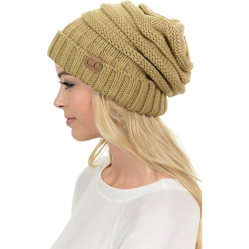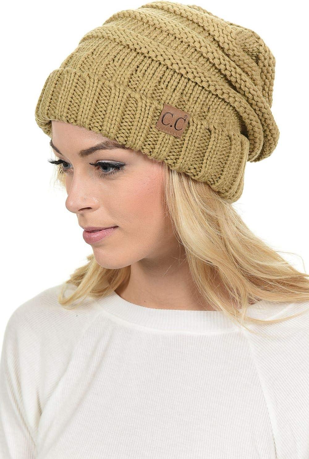 C.C Hat-100 Oversized Baggy Slouch Thick Warm Cap Hat Skully Cable Knit Beanie(Camel Solid)