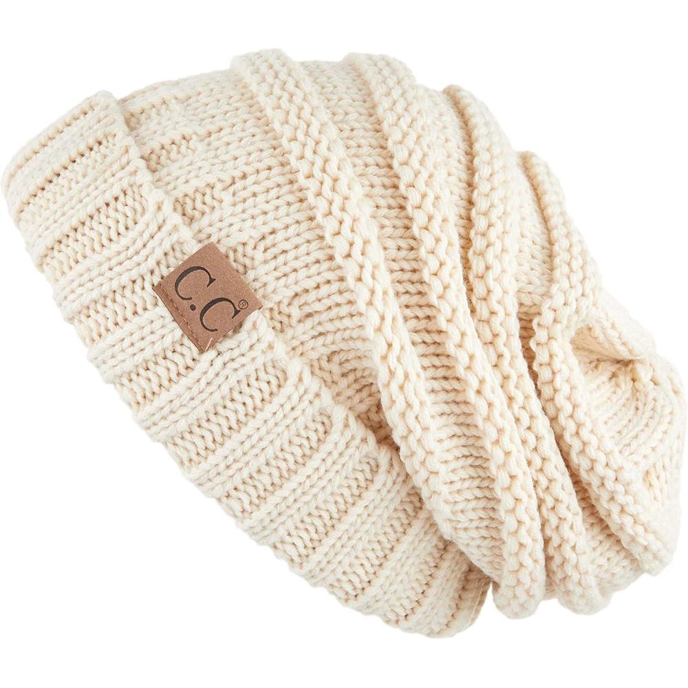 C.C Hat-100 Oversized Baggy Slouch Thick Warm Cap Hat Skully Cable Knit Beanie(New Beige Solid)