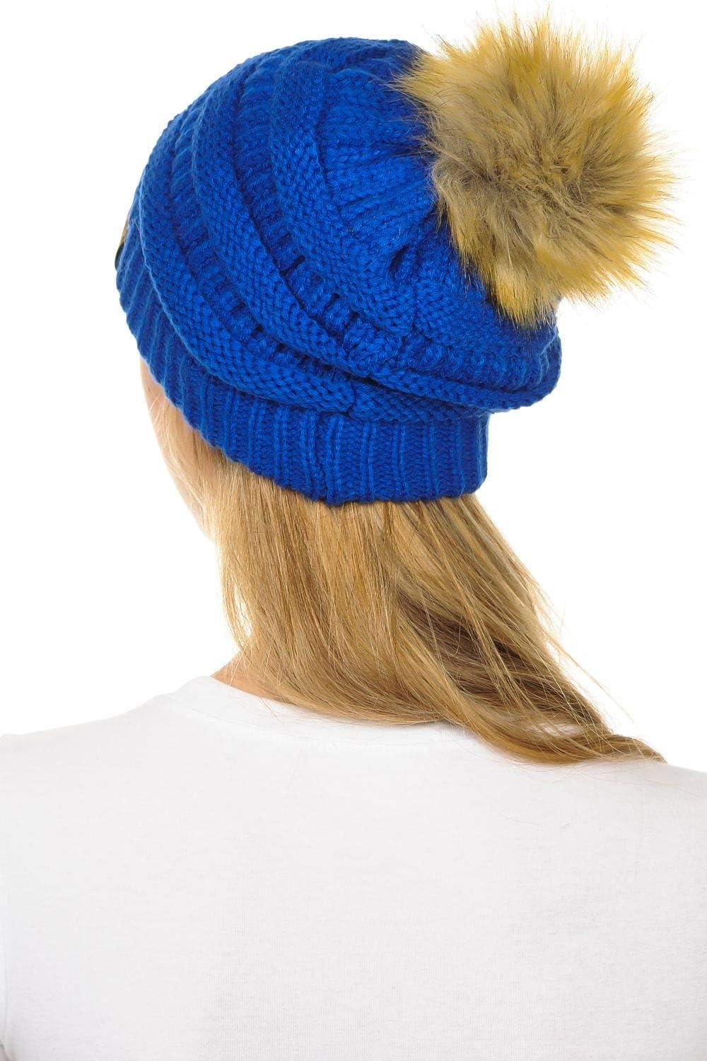 imageCC Hat43 Thick Warm Cap Hat Skully Faux Fur Pom Pom Cable Knit Beanie 2 PackRoyal
