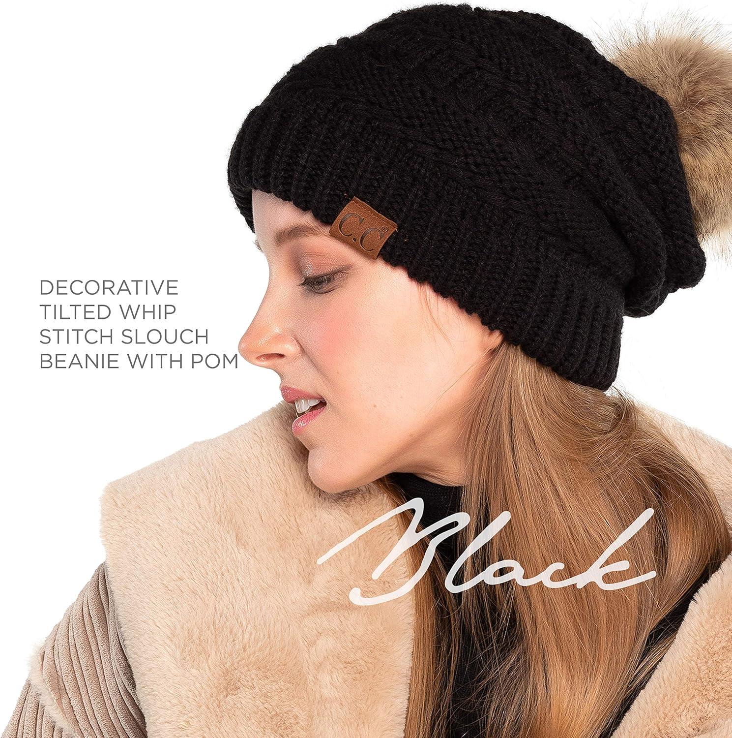 C.C Hatsandscarf Exclusives Unisex Solid Ribbed Beanie with Pom (HAT-43)(A Black-tilted Stitch)