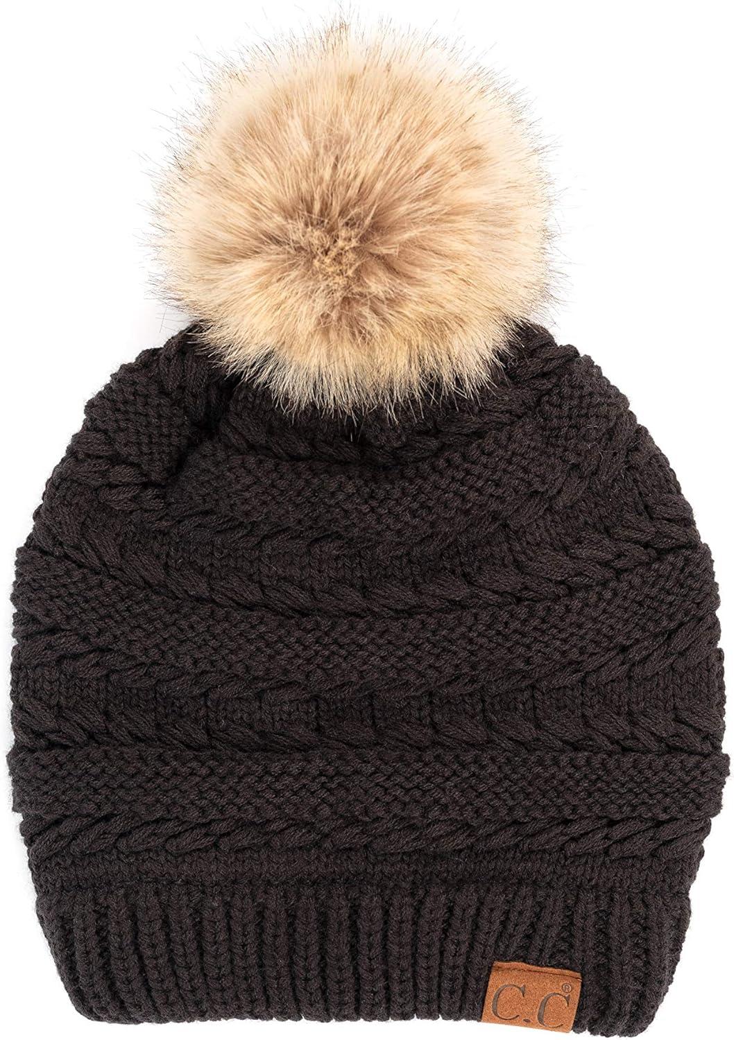 C.C Hatsandscarf Exclusives Unisex Solid Ribbed Beanie with Pom (HAT-43)(A Brioche Cable Pattern-black)
