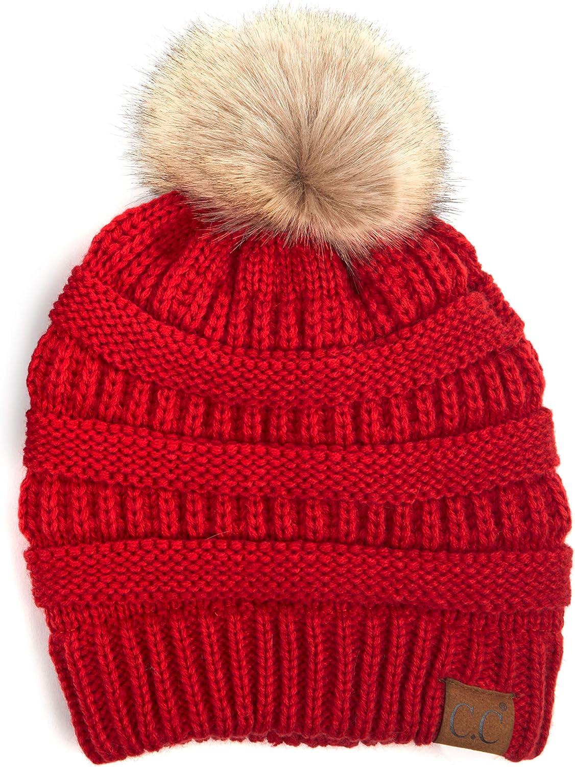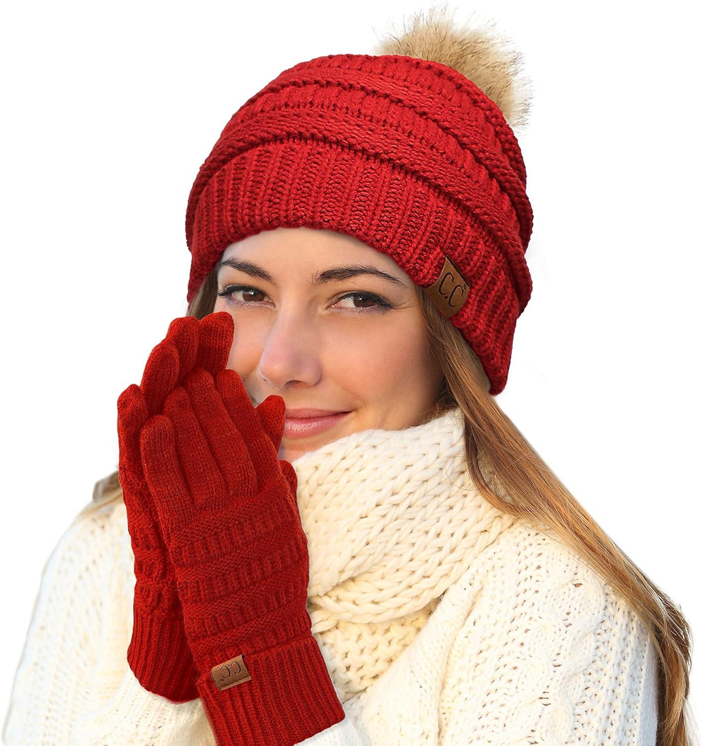 C.C Hatsandscarf Exclusives Unisex Solid Ribbed Beanie with Pom (HAT-43)(A Gift Set-red)