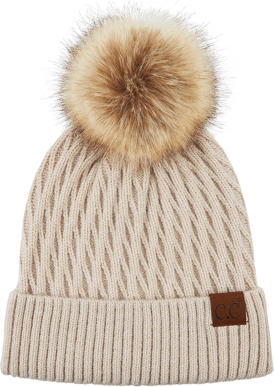 C.C Hatsandscarf Exclusives Unisex Solid Ribbed Beanie with Pom (HAT-43)(A Honey Comb Pattern(rayon)-beige)