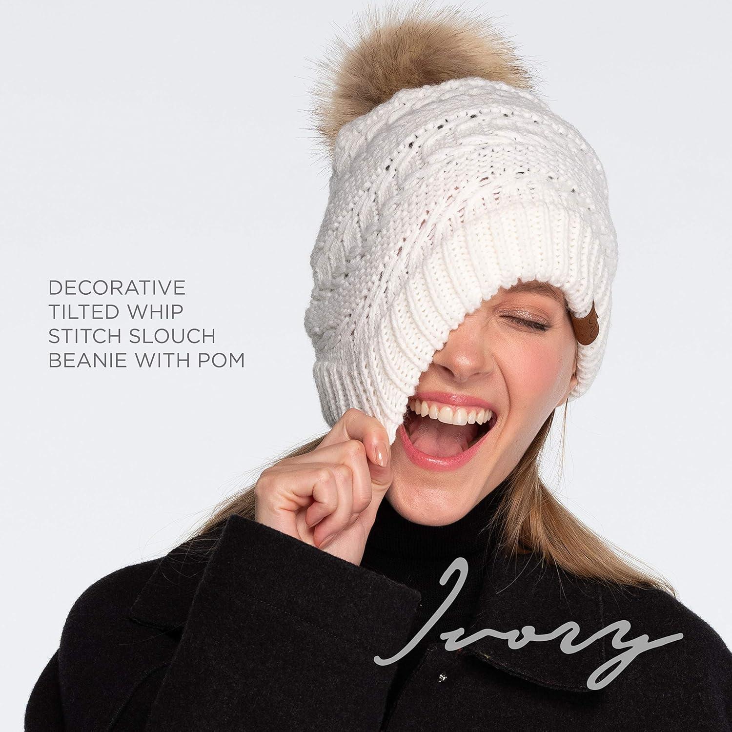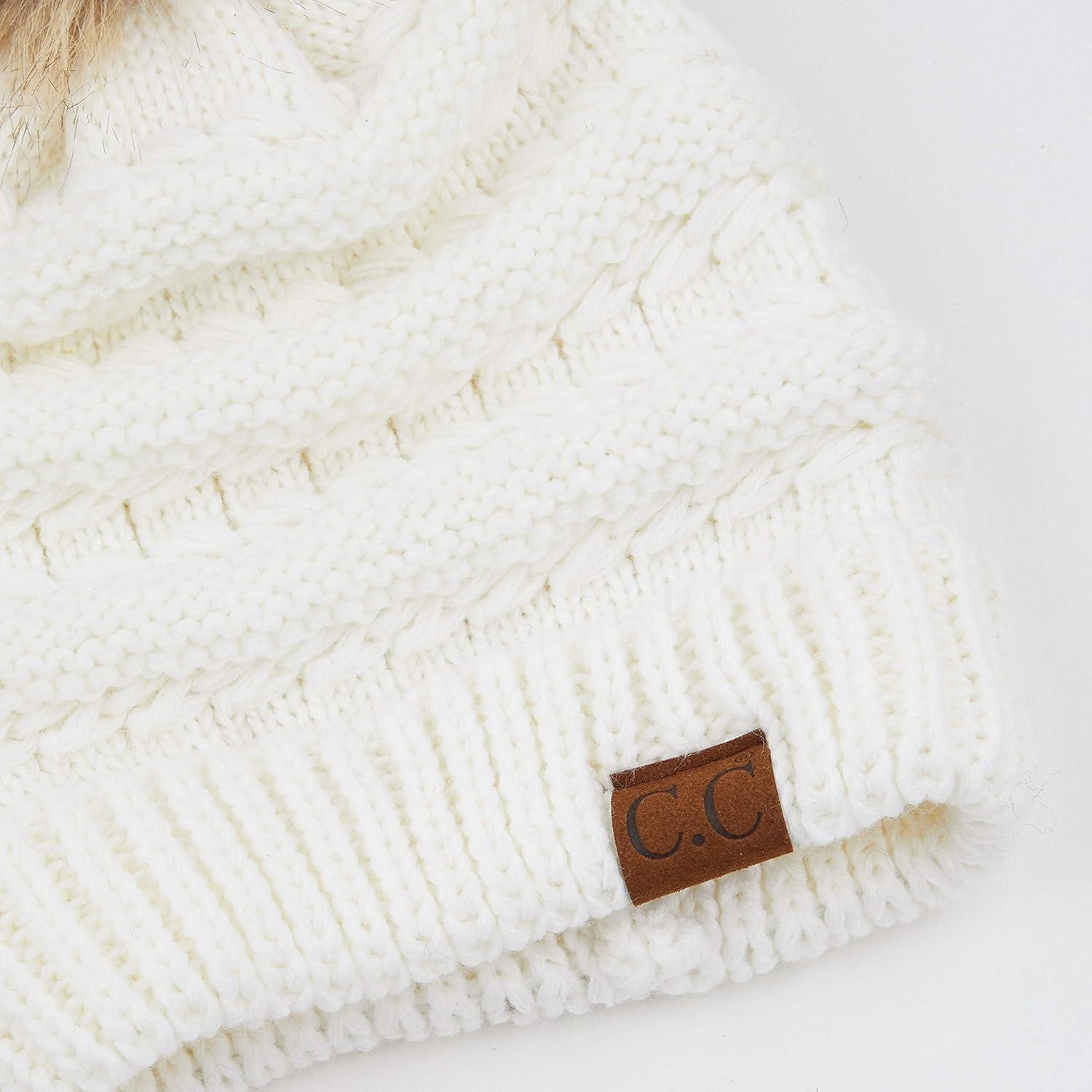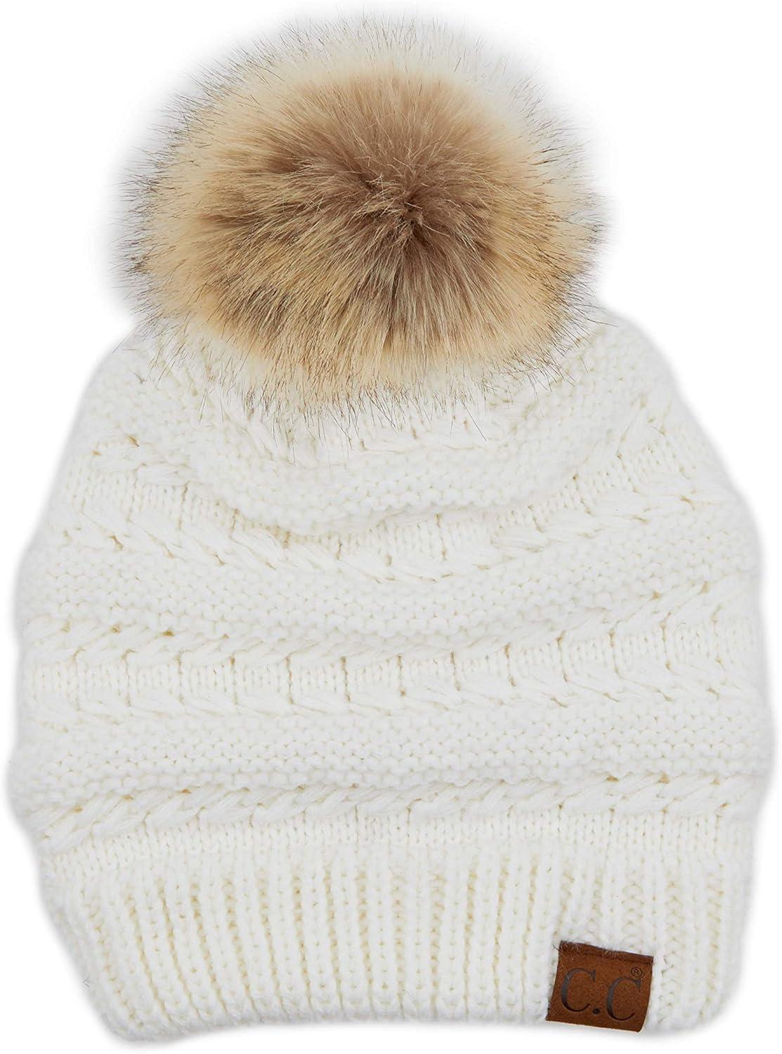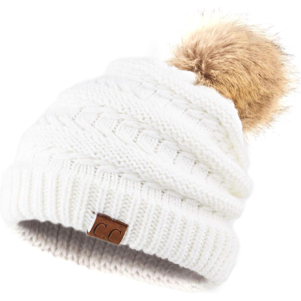 C.C Hatsandscarf Exclusives Unisex Solid Ribbed Beanie with Pom (HAT-43)(A Ivory-tilted Stitch)