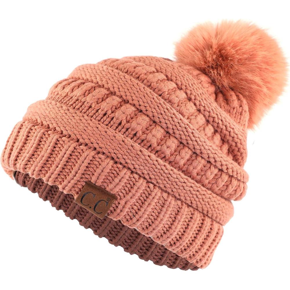 C.C Hatsandscarf Exclusives Unisex Solid Ribbed Beanie with Pom (HAT-43)(A-rose/Ivy)