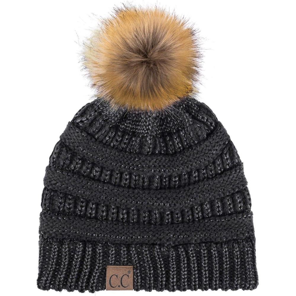 C.C Hatsandscarf Exclusives Unisex Solid Ribbed Beanie with Pom (HAT-43)(Black Metallic)