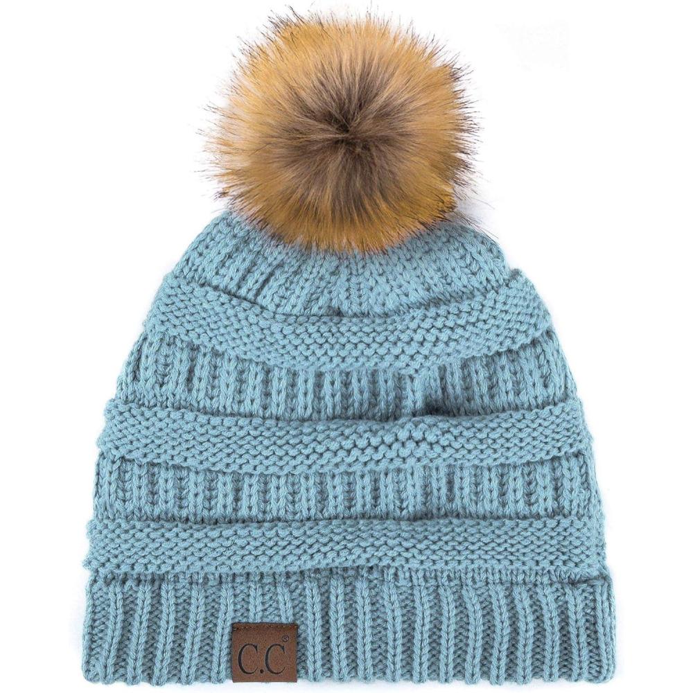 C.C Hatsandscarf Exclusives Unisex Solid Ribbed Beanie with Pom (HAT-43)(Denim)