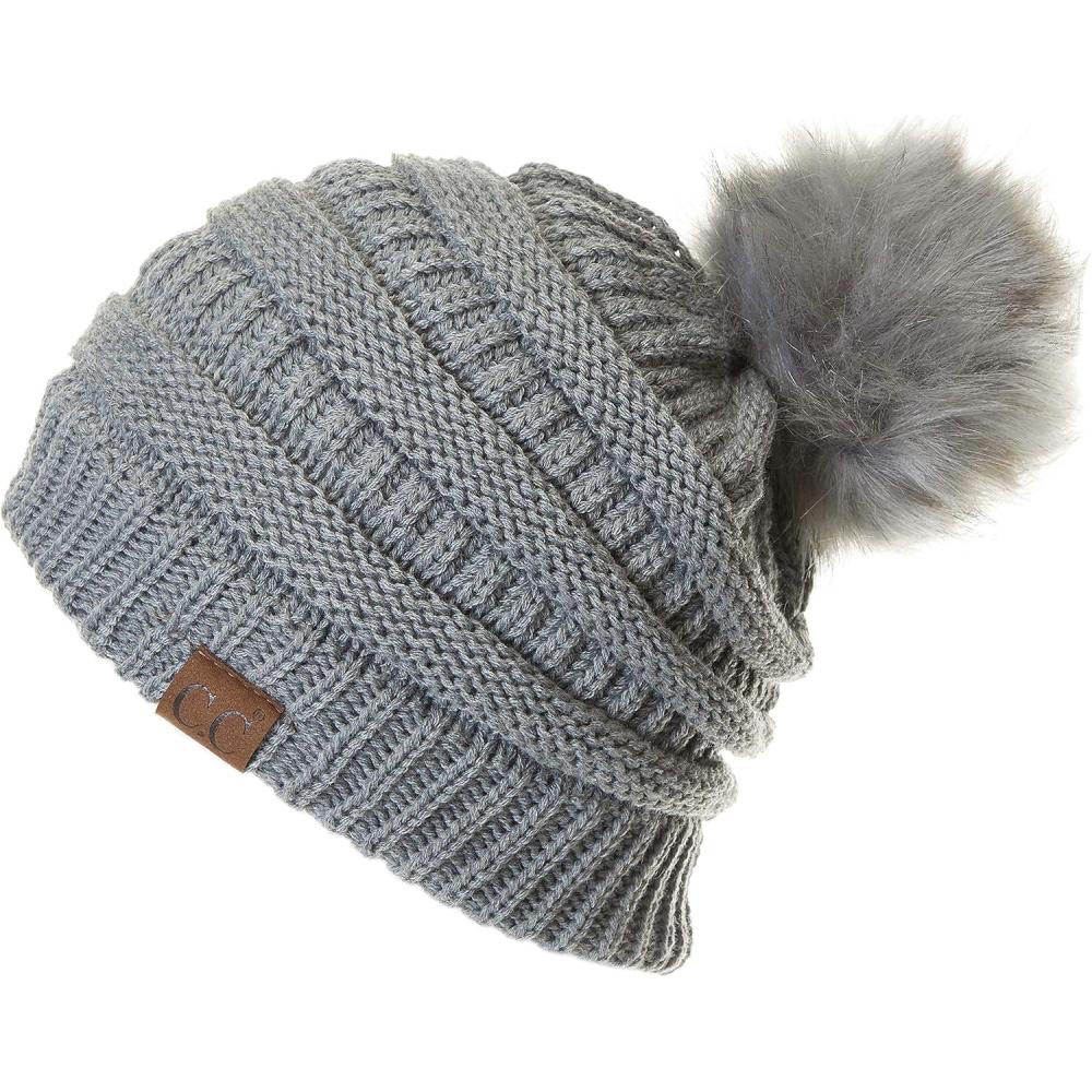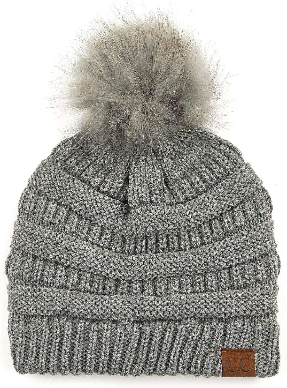 C.C Hatsandscarf Exclusives Unisex Solid Ribbed Beanie with Pom (HAT-43)(Lt Melangie)