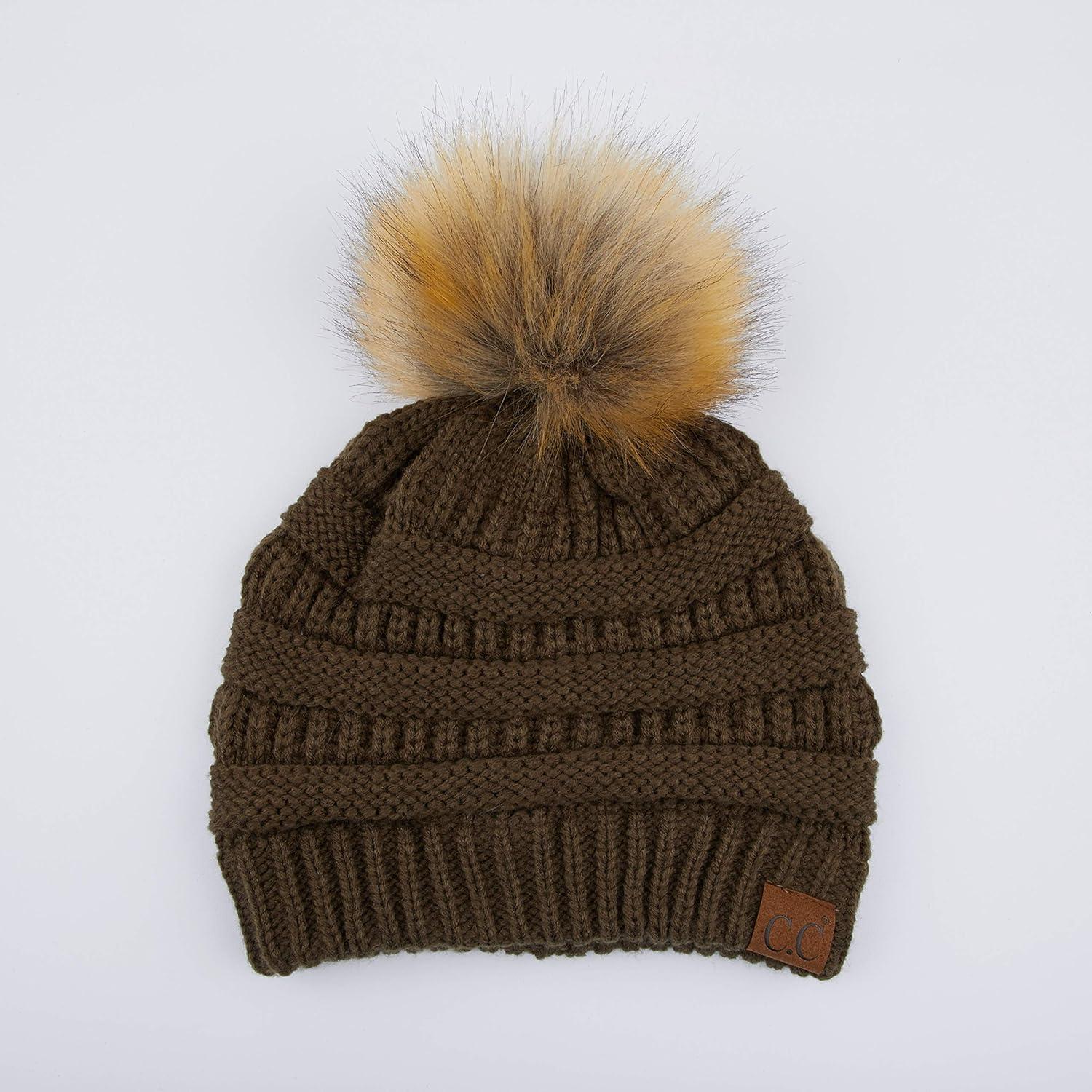 C.C Hatsandscarf Exclusives Unisex Solid Ribbed Beanie with Pom (HAT-43)(New Olive)