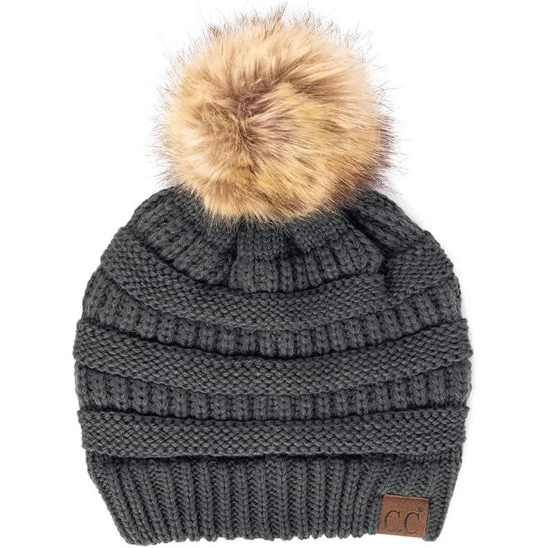 imageCC Hatsandscarf Exclusives Unisex Solid Ribbed Beanie with Pom HAT43Teal Grey