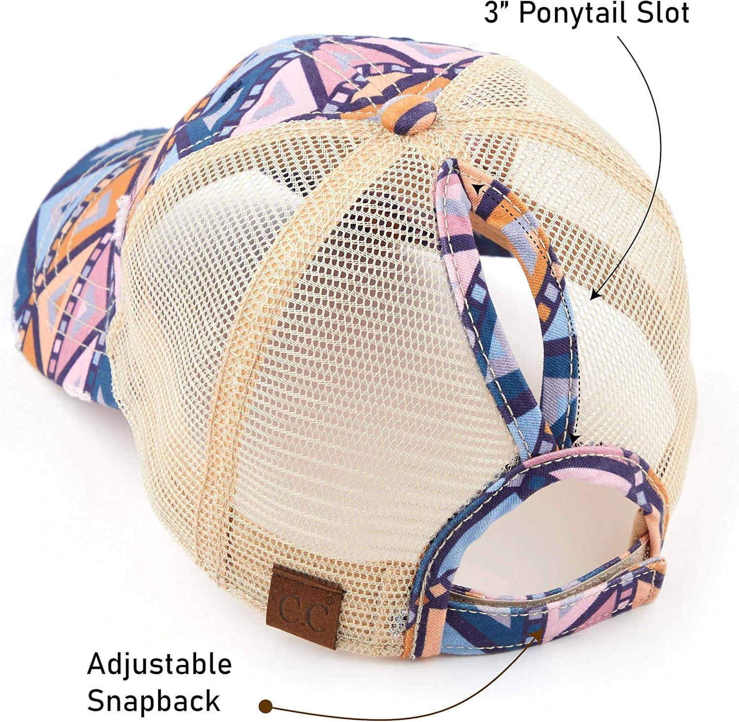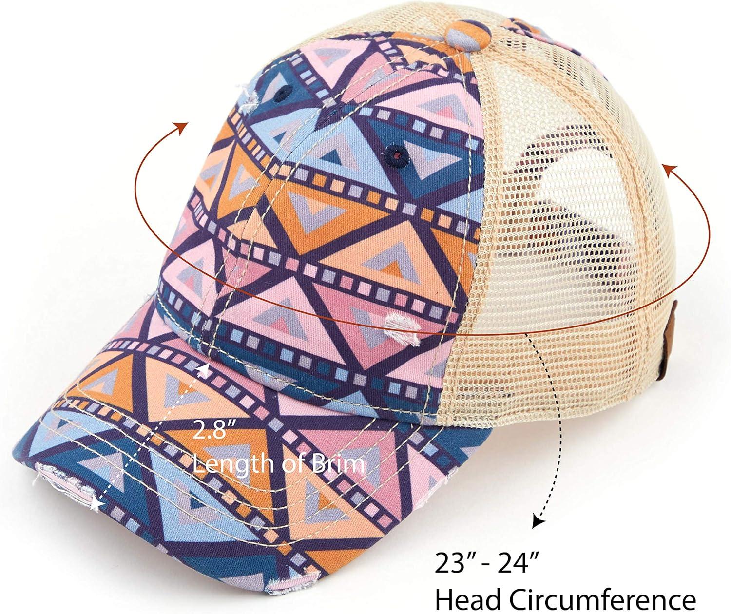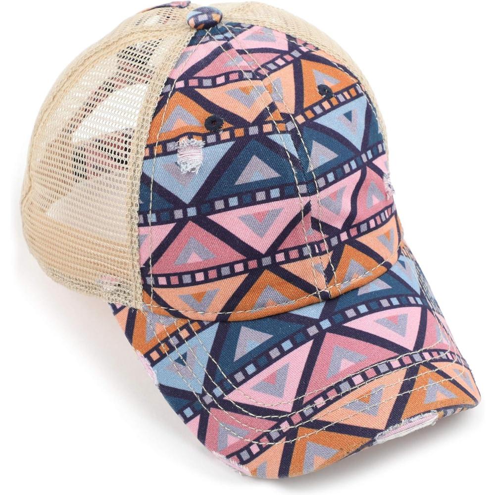 C.C Hatsandscarf Exclusives Washed Distressed Cotton Denim Ponytail Hat Adjustable Baseball Cap (BT-12) (BT-13)(A Aztec Patten-mauve)