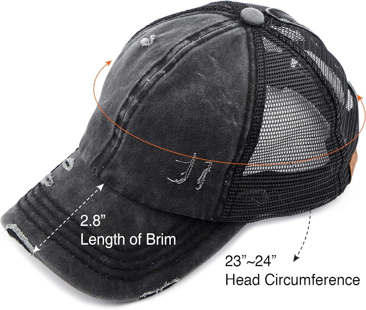imageCC Hatsandscarf Exclusives Washed Distressed Cotton Denim Ponytail Hat Adjustable Baseball Cap BT12 BT13All Black