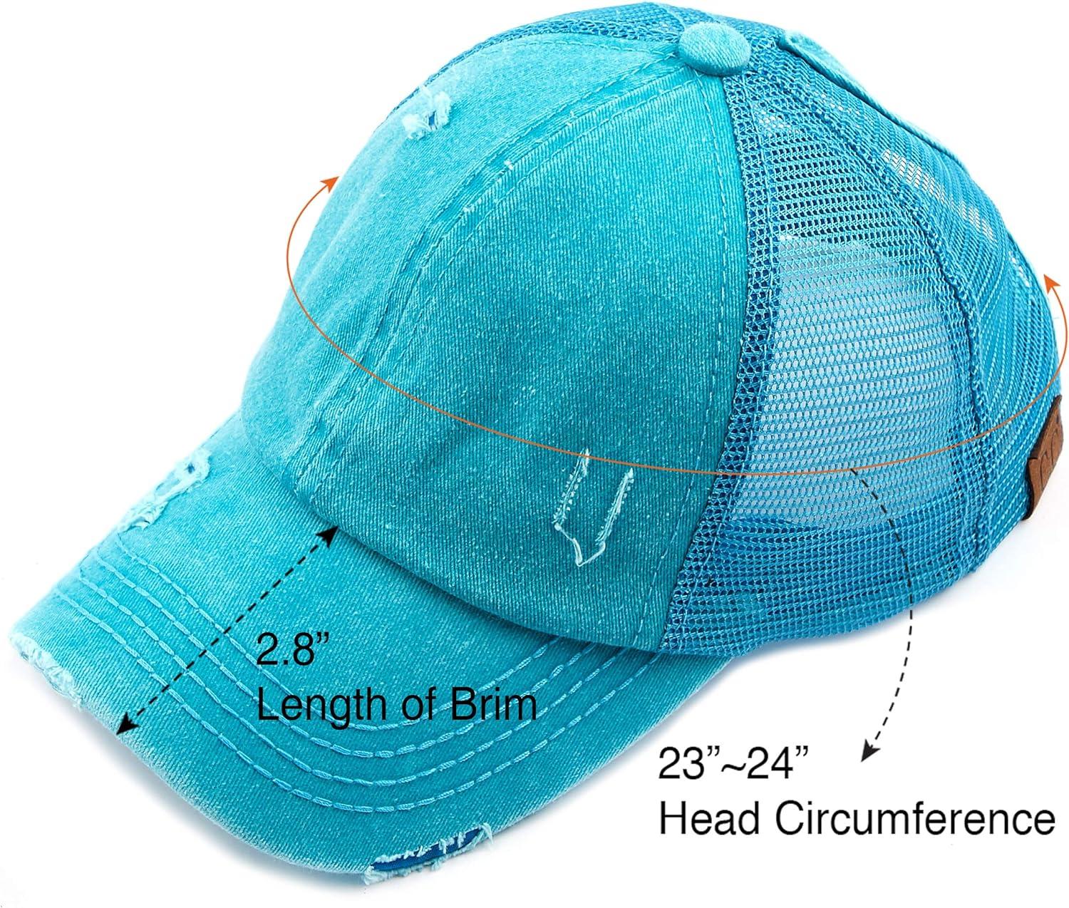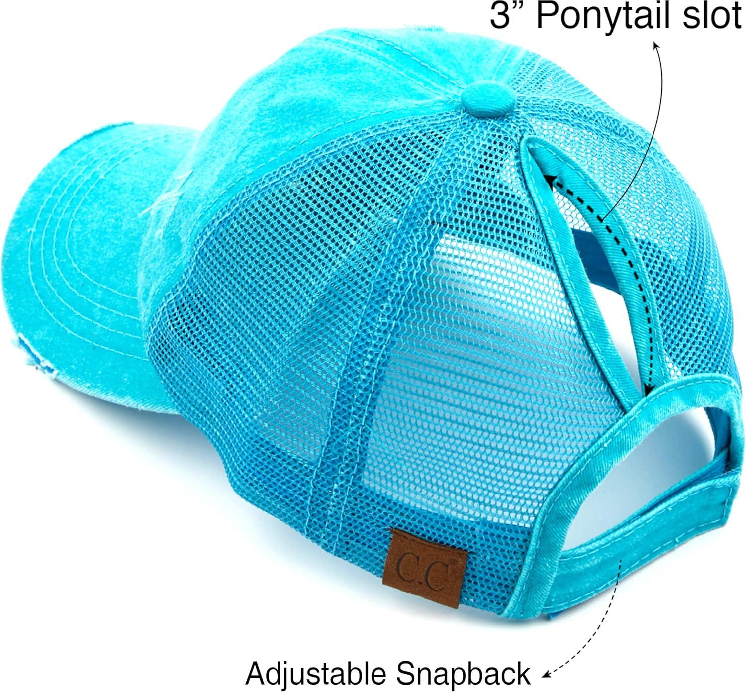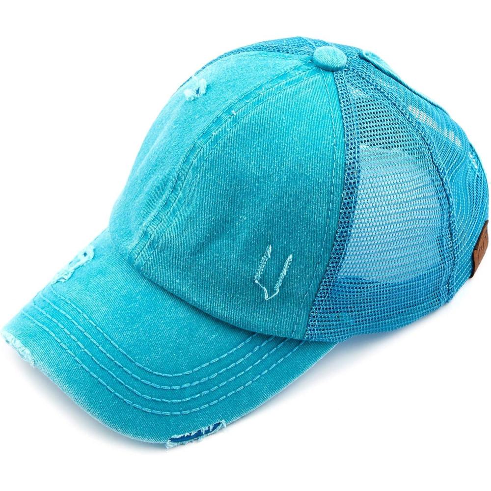 C.C Hatsandscarf Exclusives Washed Distressed Cotton Denim Ponytail Hat Adjustable Baseball Cap (BT-12) (BT-13)(All Turquoise)
