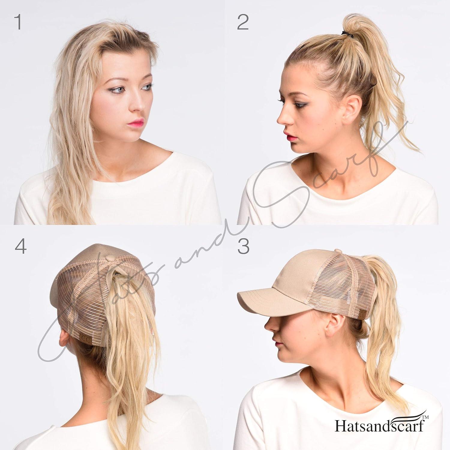 imageCC Hatsandscarf Exclusives Washed Distressed Cotton Denim Ponytail Hat Adjustable Baseball Cap BT12 BT13Black
