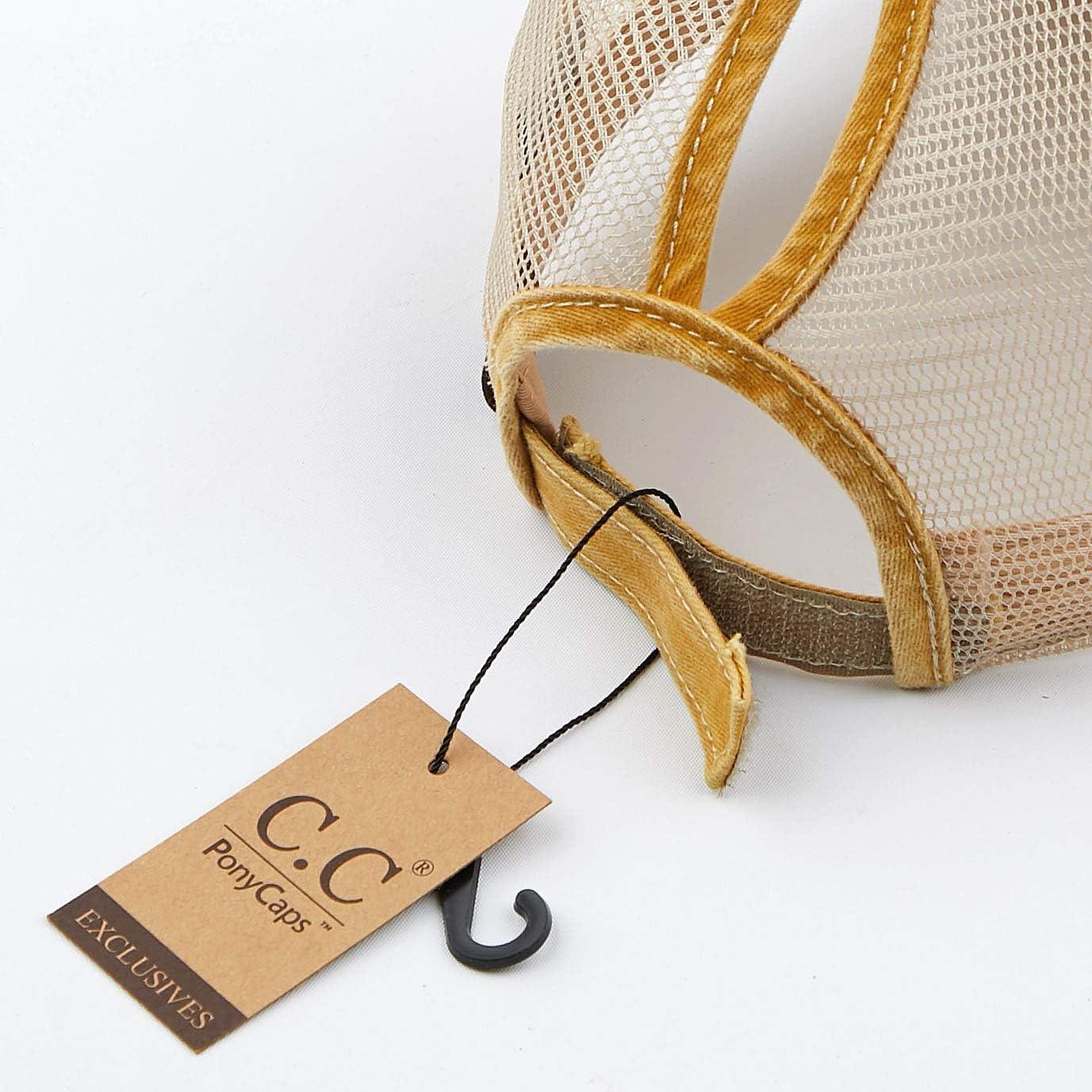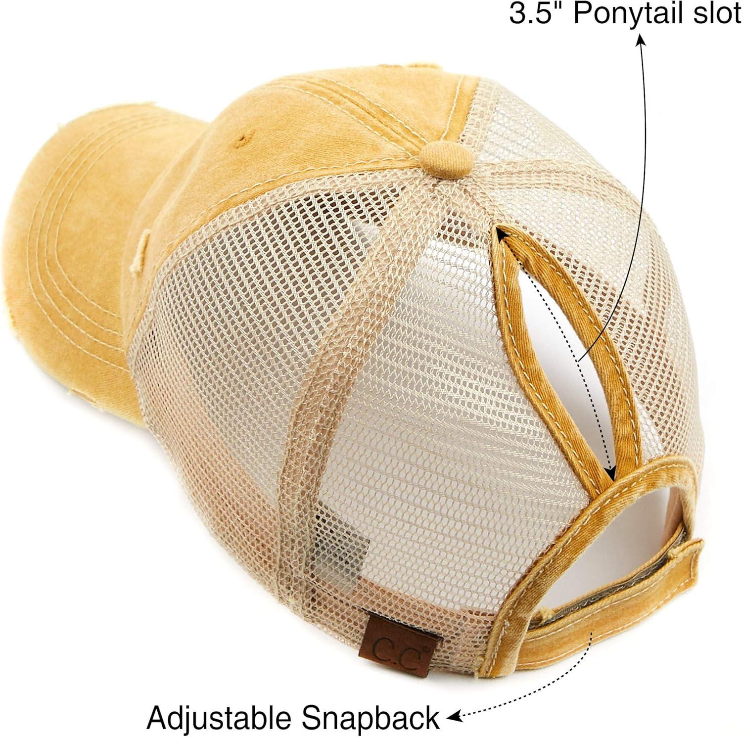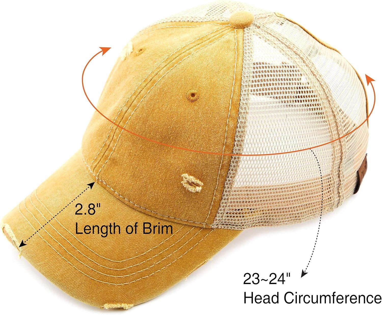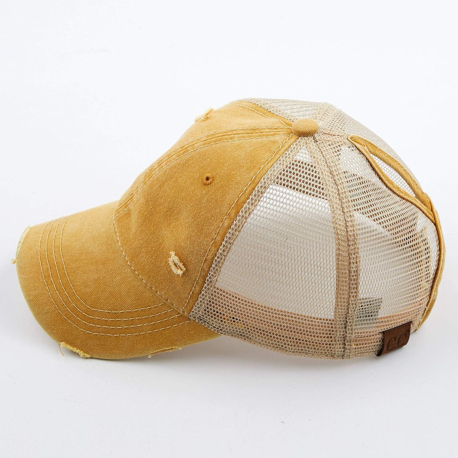 C.C Hatsandscarf Exclusives Washed Distressed Cotton Denim Ponytail Hat Adjustable Baseball Cap (BT-12) (BT-13)(Mustard)