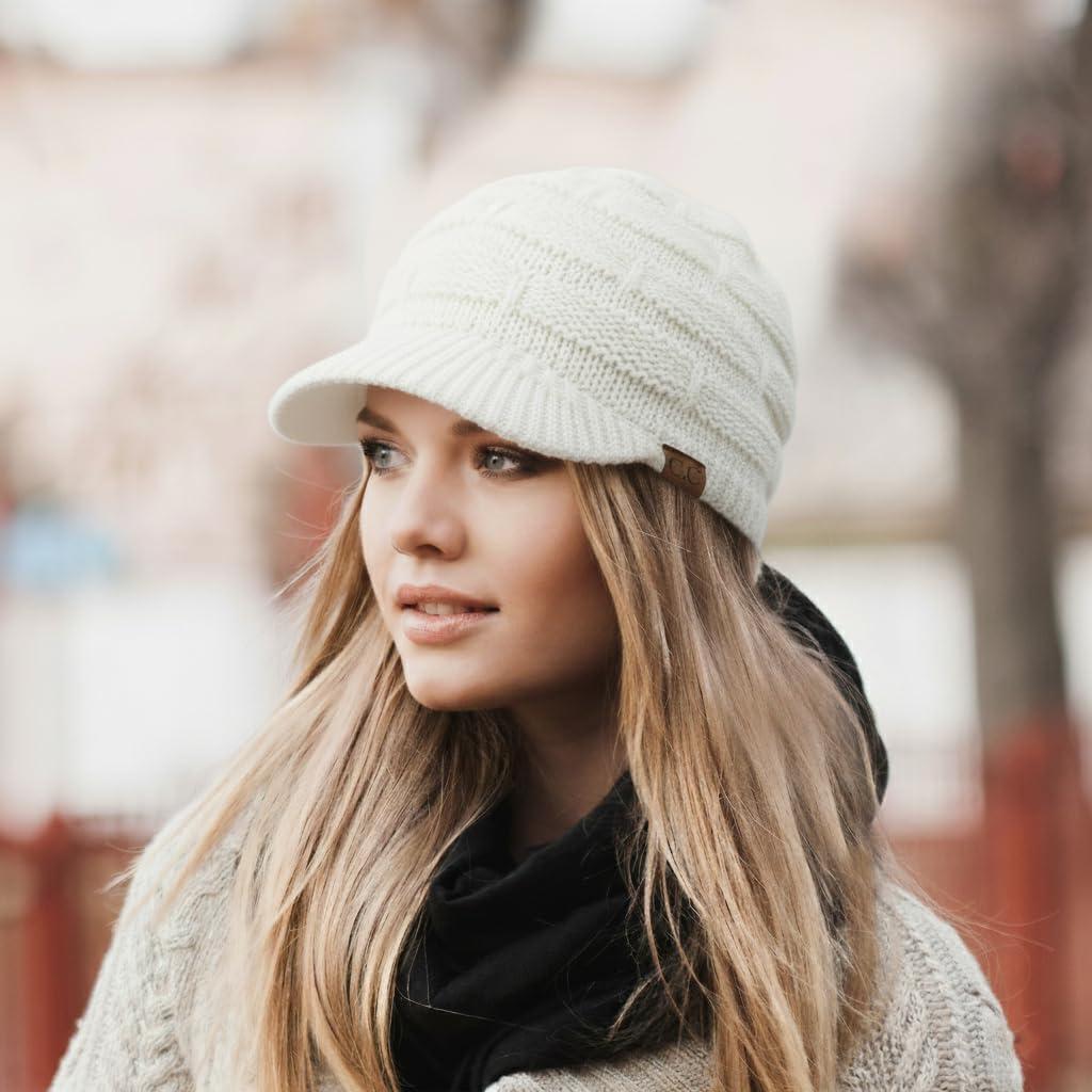 C.C Hatsandscarf Exclusives Women’s Ribbed Knit Hat with Brim (YJ-131)(YJ-2023)(A Ivory)