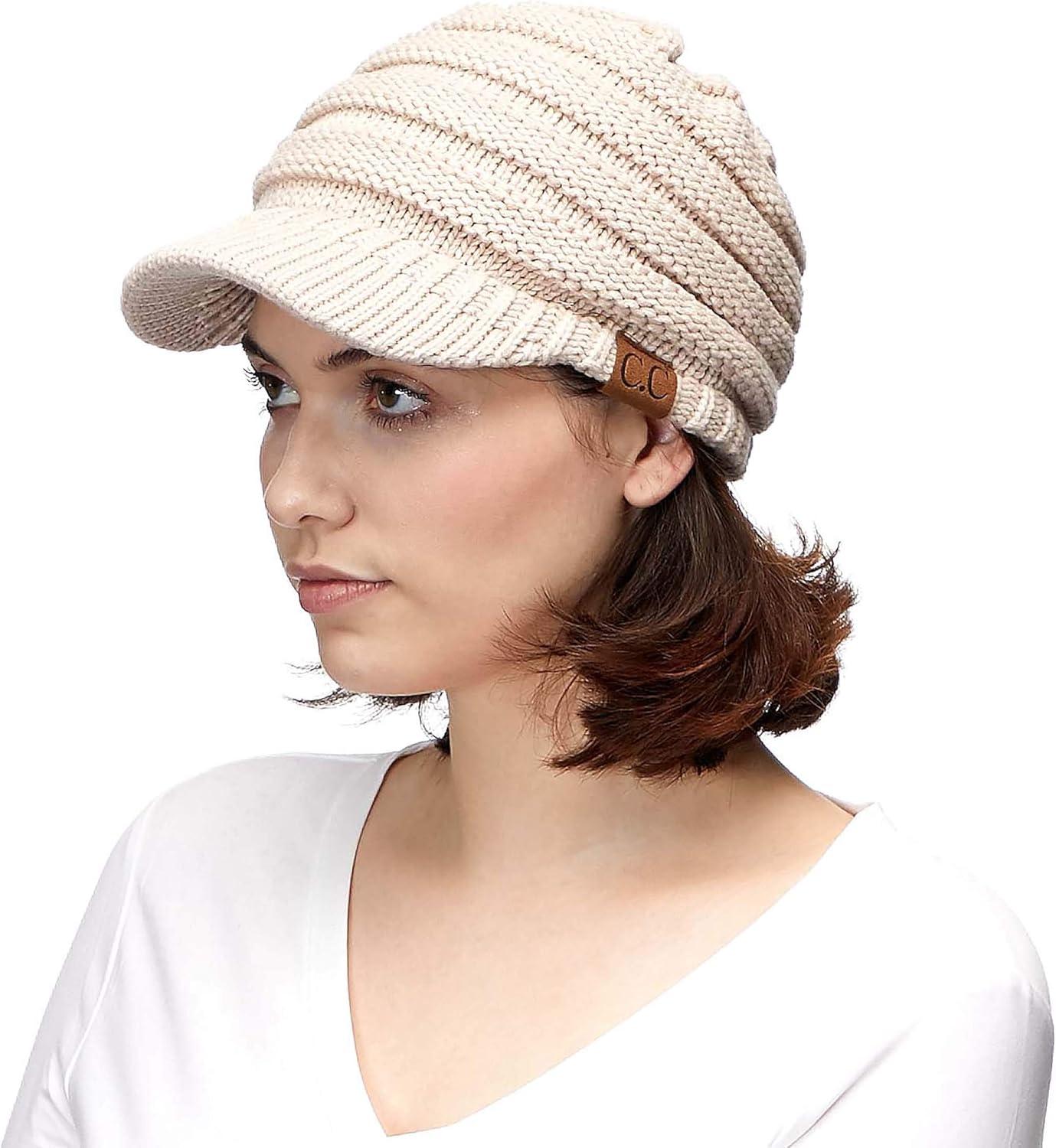 C.C Hatsandscarf Exclusives Women’s Ribbed Knit Hat with Brim (YJ-131)(YJ-2023)(Beige Amazon)