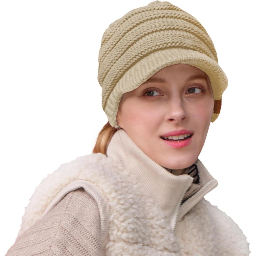 C.C Hatsandscarf Exclusives Women’s Ribbed Knit Hat with Brim (YJ-131)(YJ-2023)(Beige Amazon)