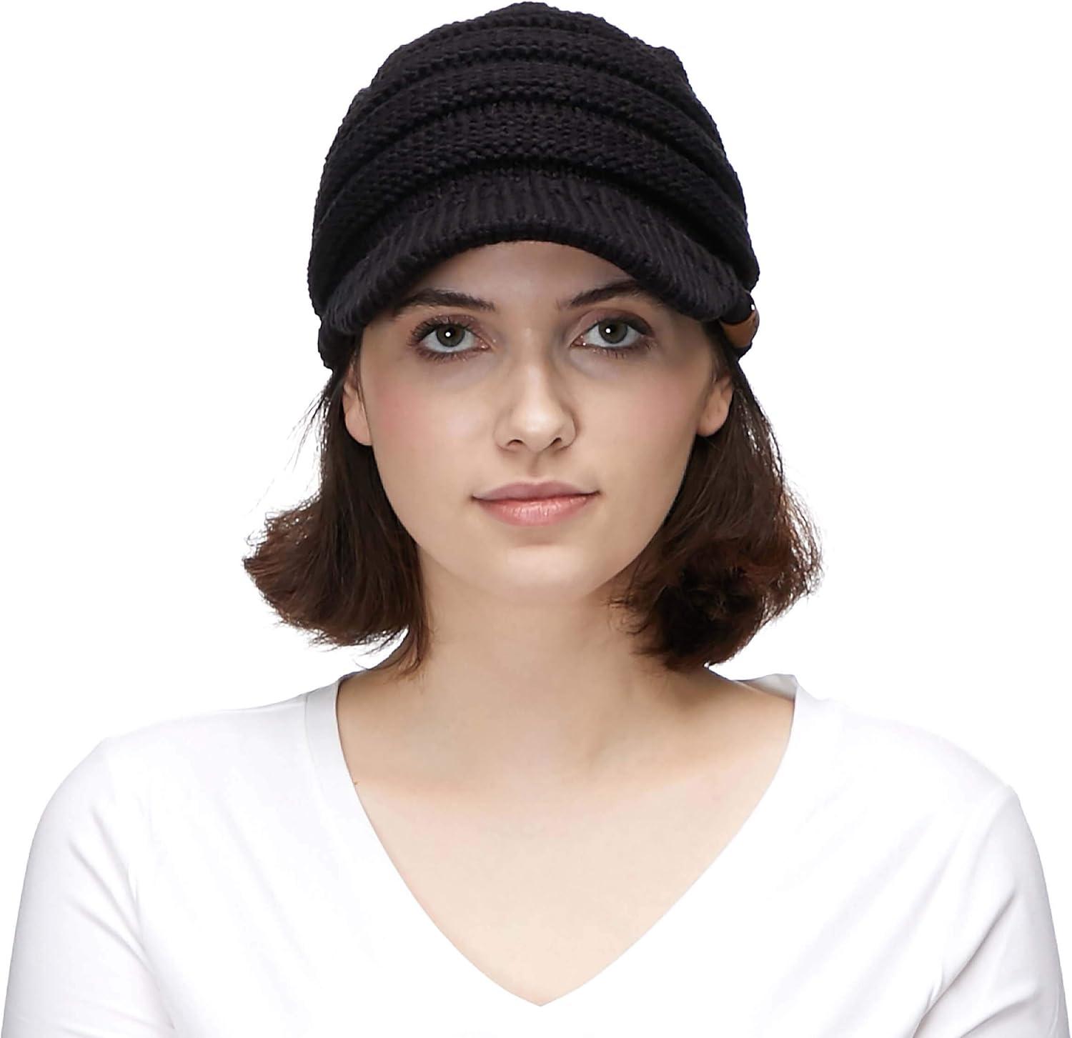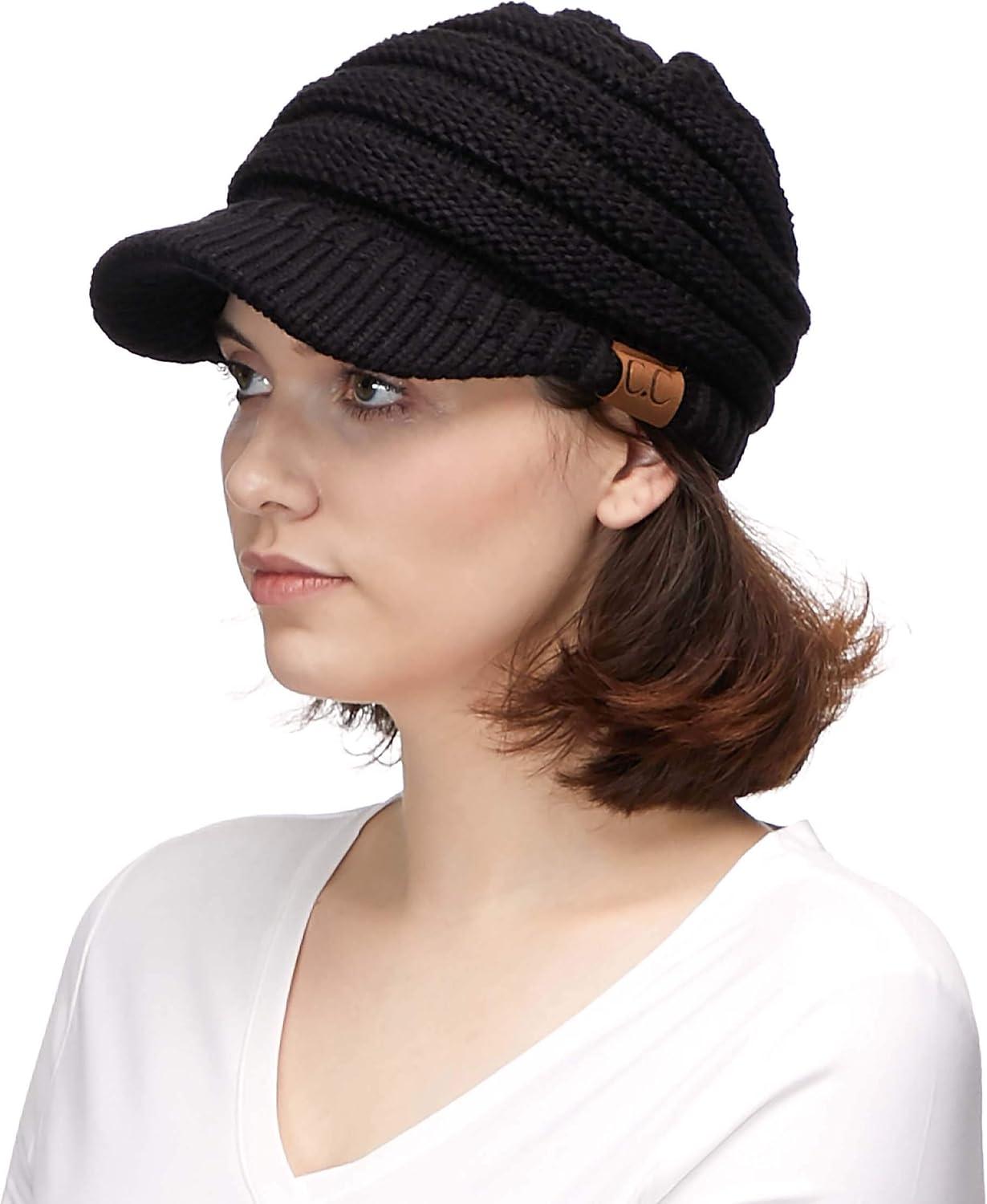 C.C Hatsandscarf Exclusives Women’s Ribbed Knit Hat with Brim (YJ-131)(YJ-2023)(Black Amazon)