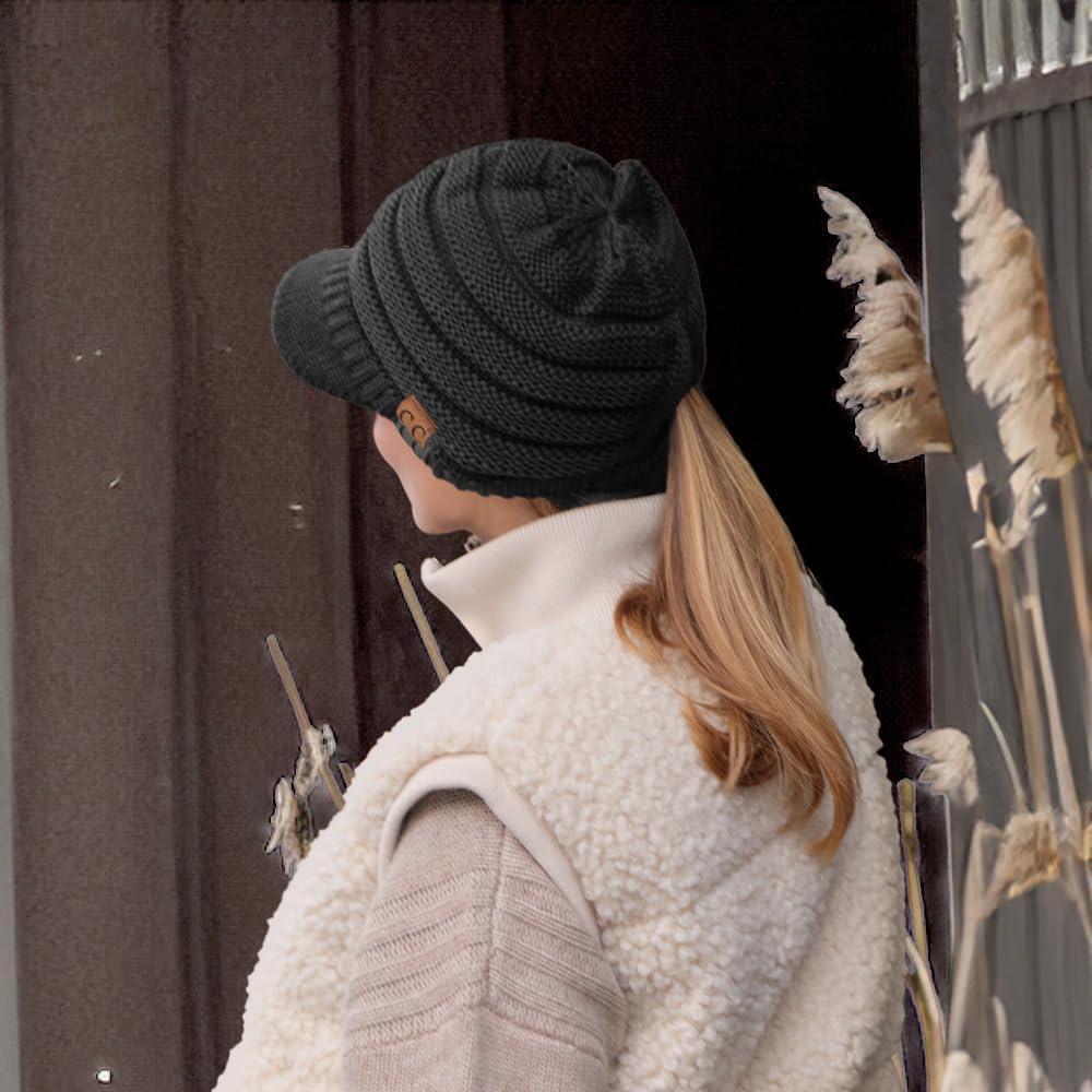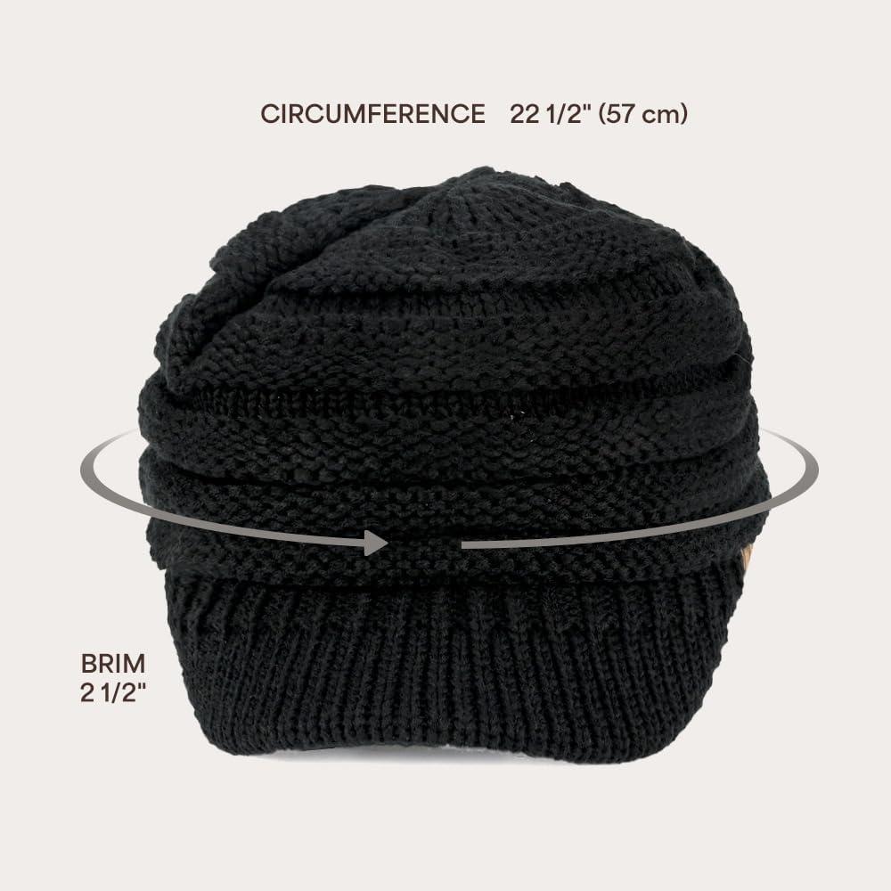 C.C Hatsandscarf Exclusives Women’s Ribbed Knit Hat with Brim (YJ-131)(YJ-2023)(Black Amazon)