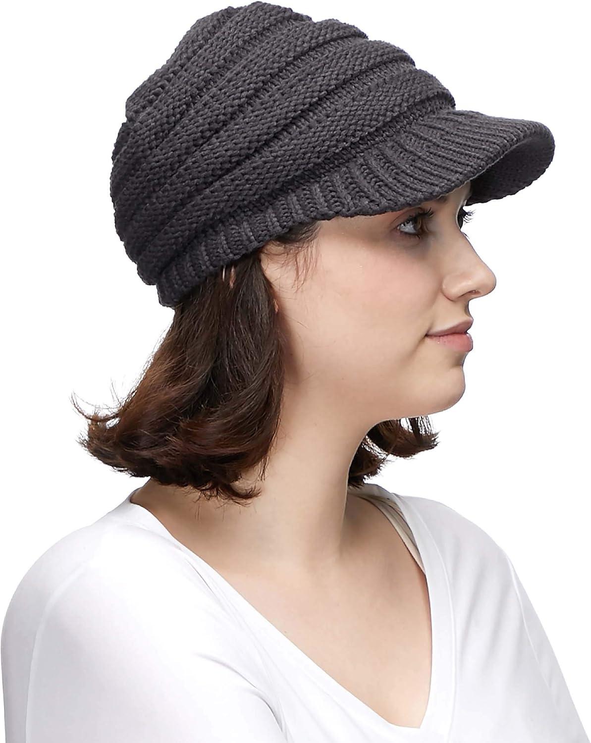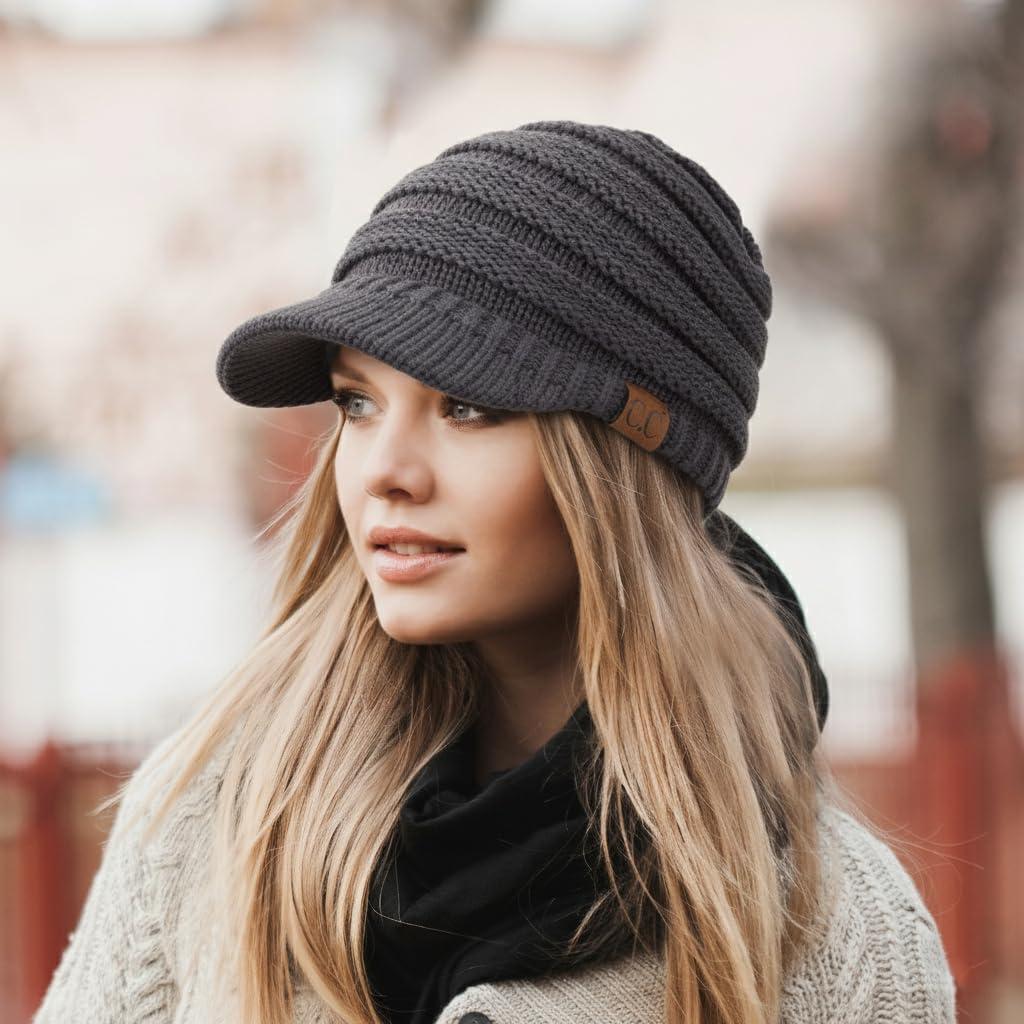 C.C Hatsandscarf Exclusives Women’s Ribbed Knit Hat with Brim (YJ-131)(YJ-2023)(Dark Grey)