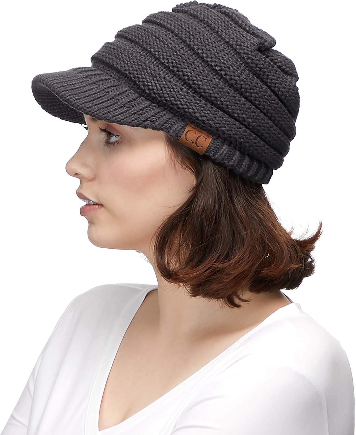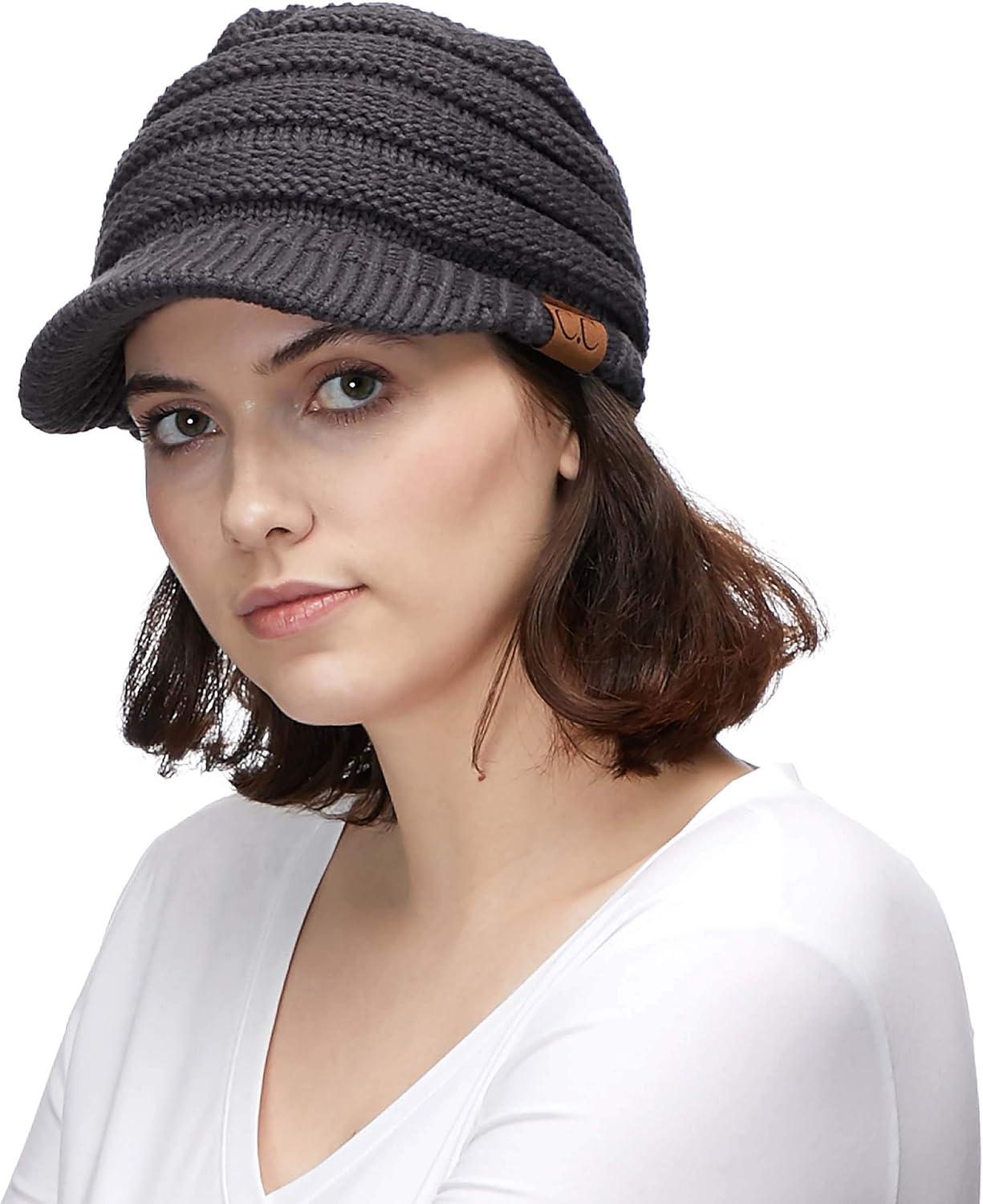 C.C Hatsandscarf Exclusives Women's Ribbed Knit Hat with Brim (YJ-131)(YJ-2023)(Dark Grey)