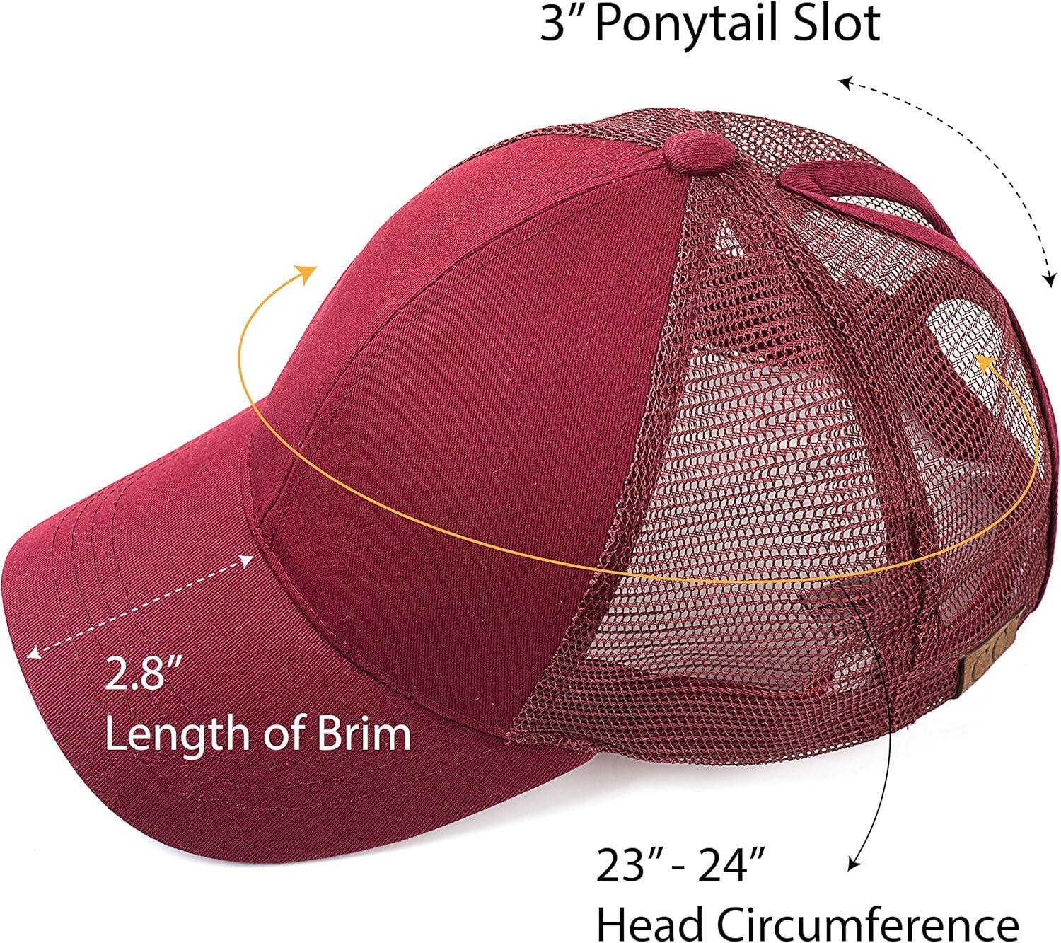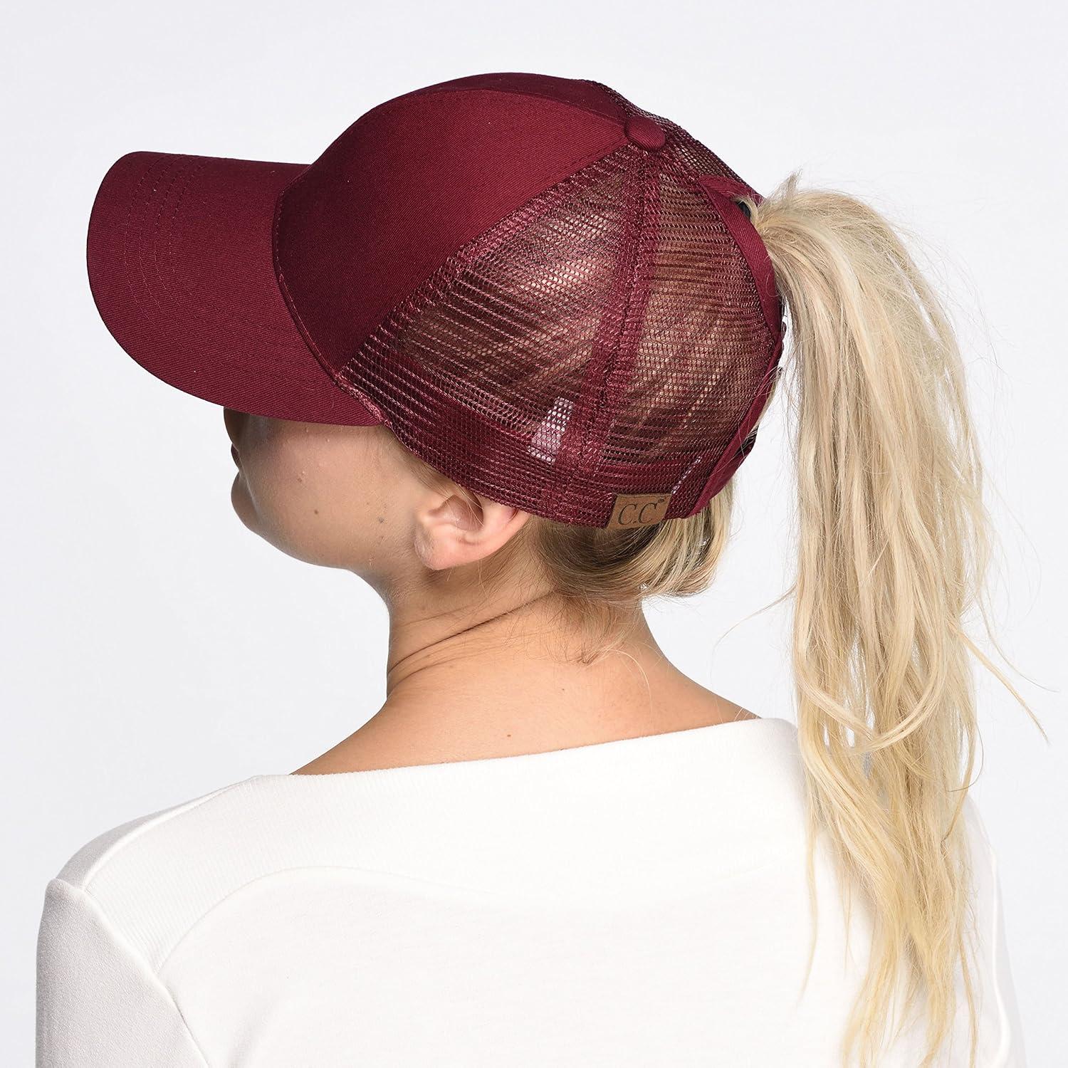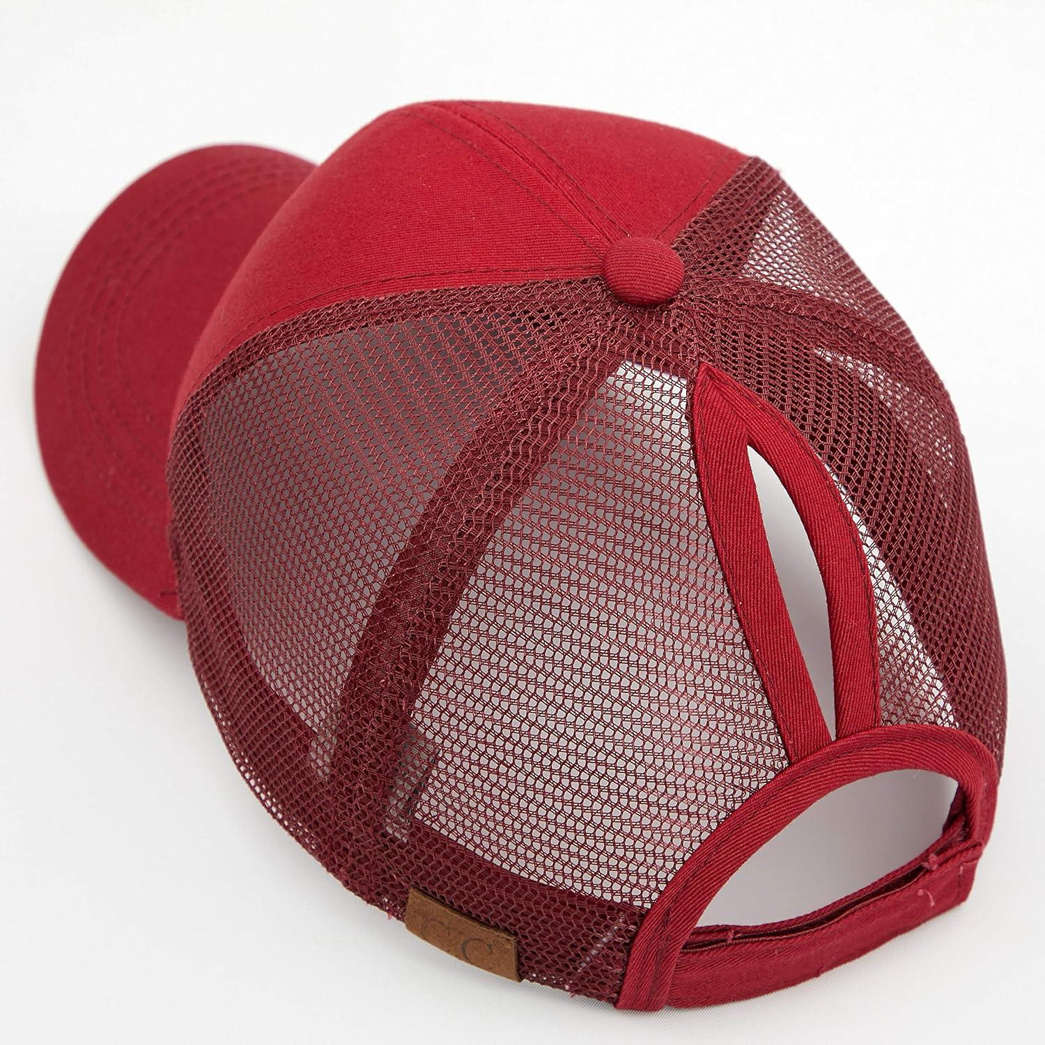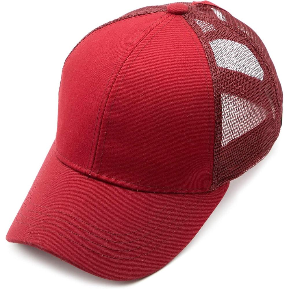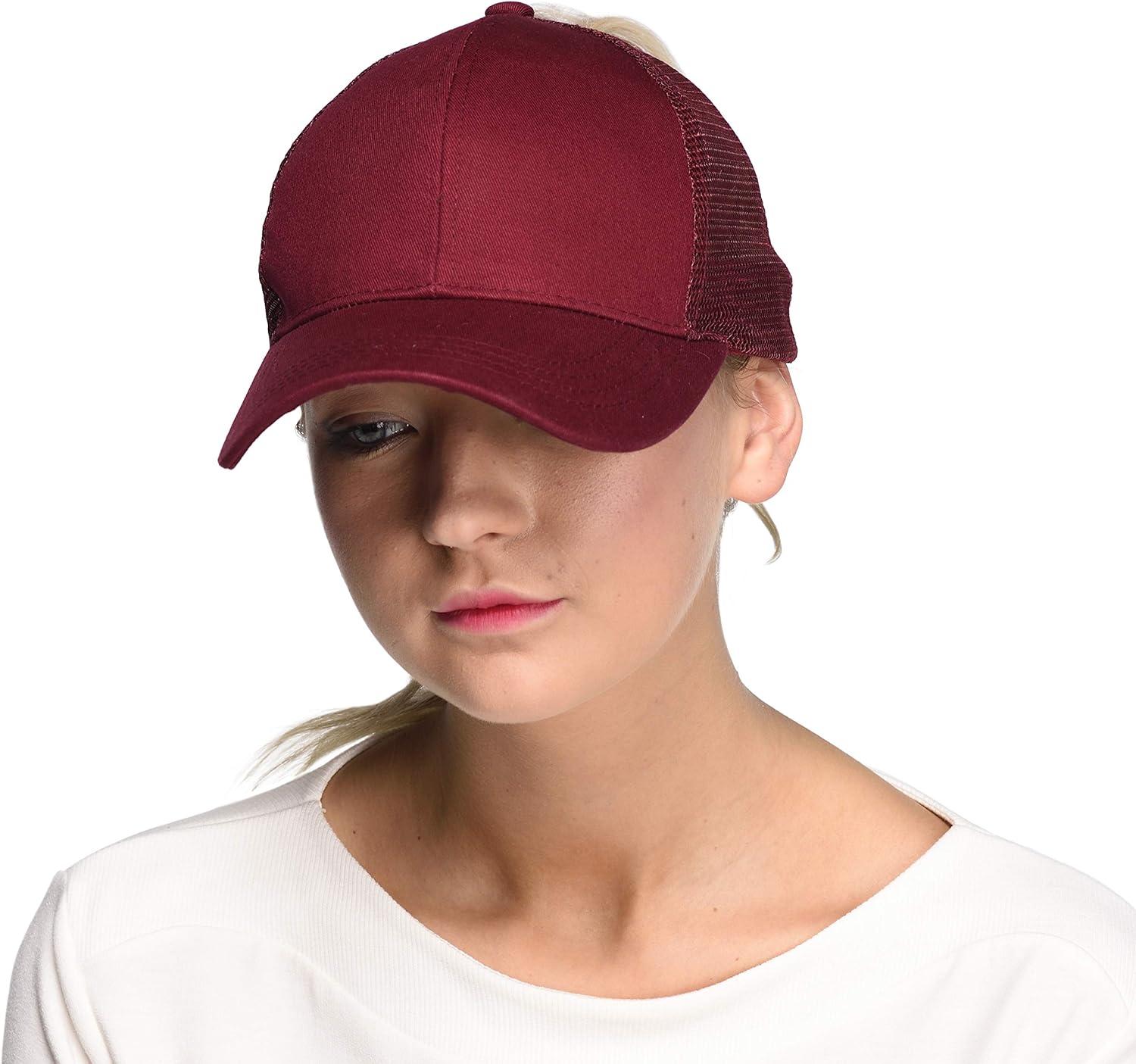 C.C Hatsandscarf Ponytail caps Messy Buns Trucker Plain Baseball Cap (BT-6)(Burgundy)