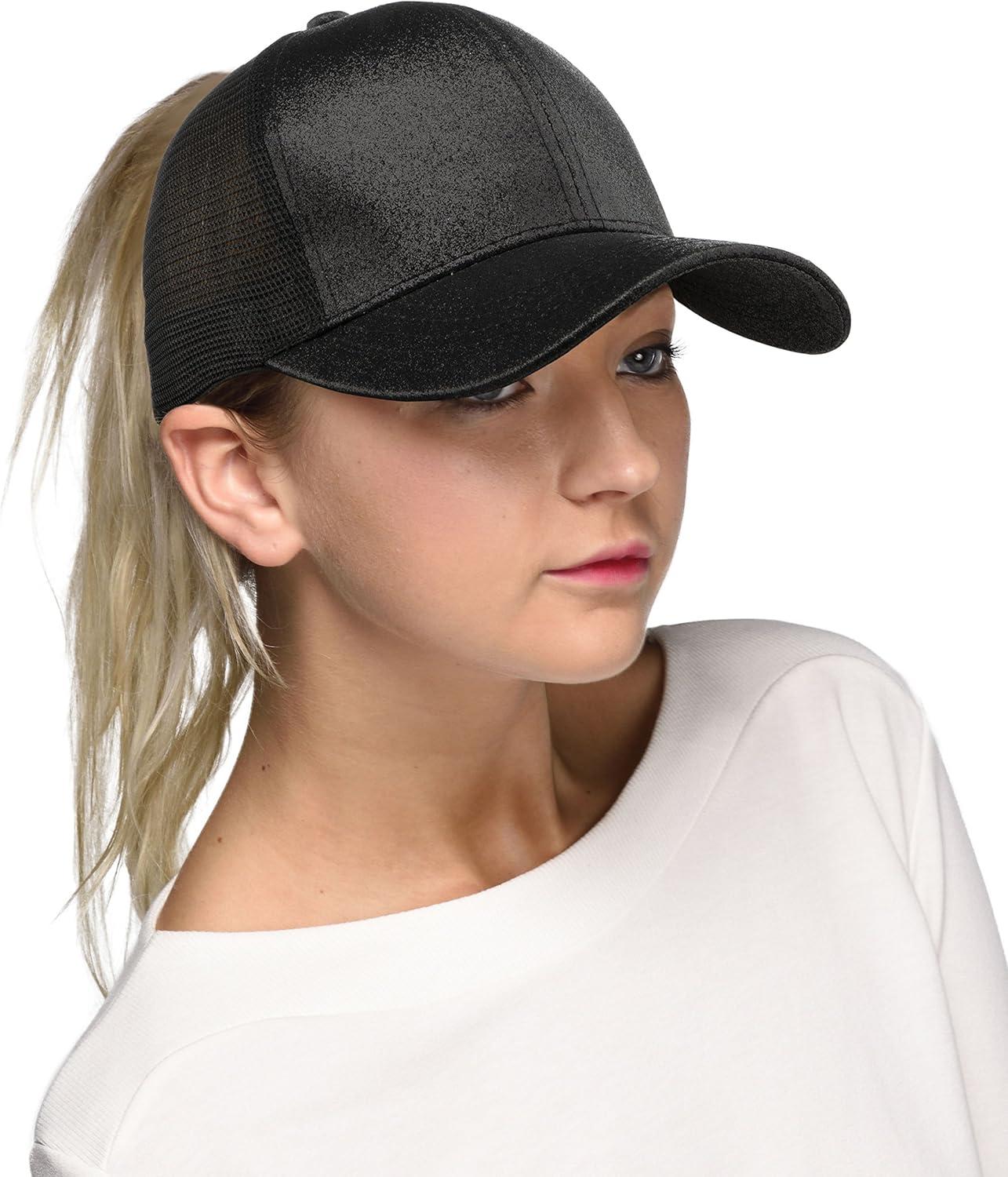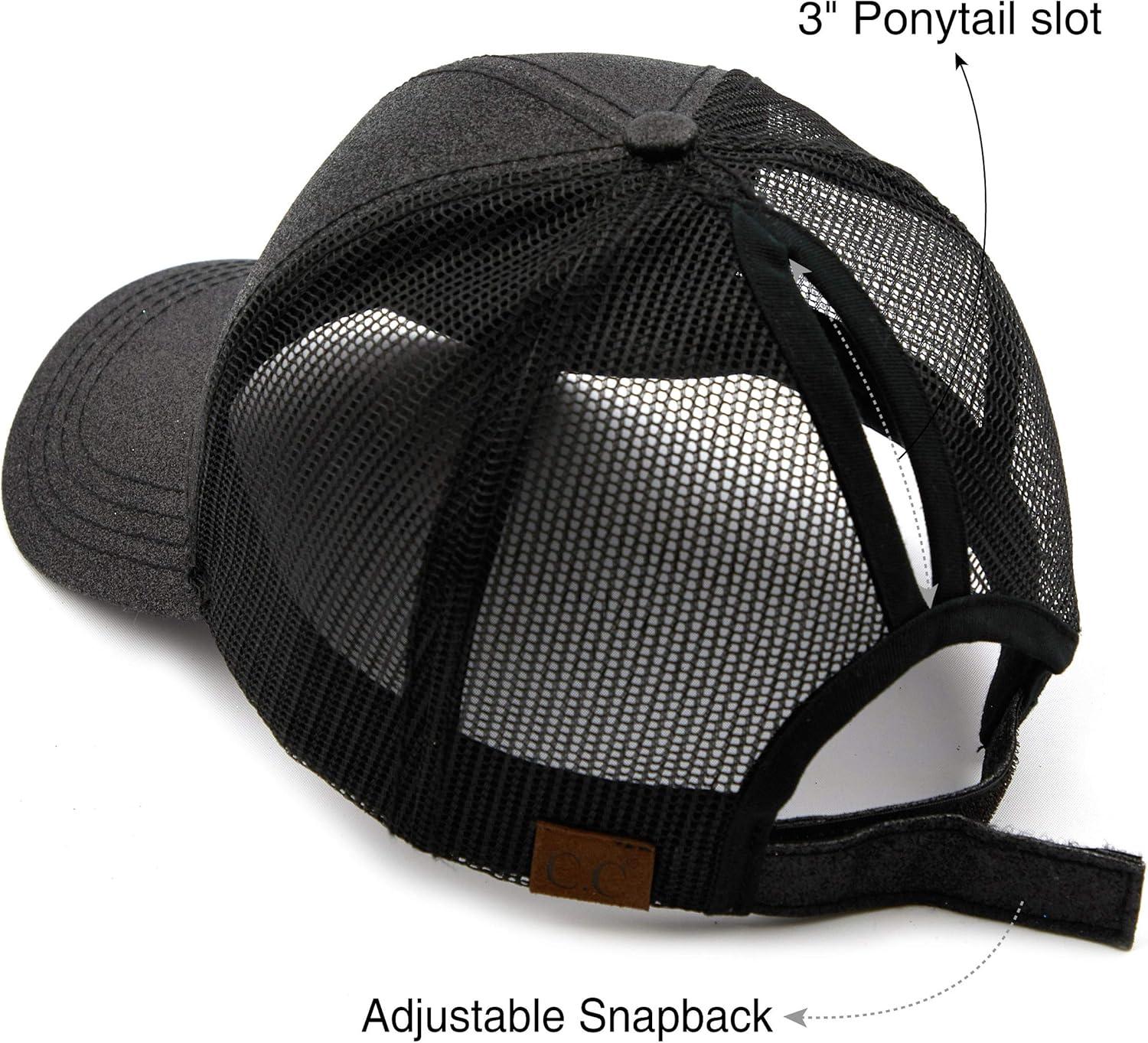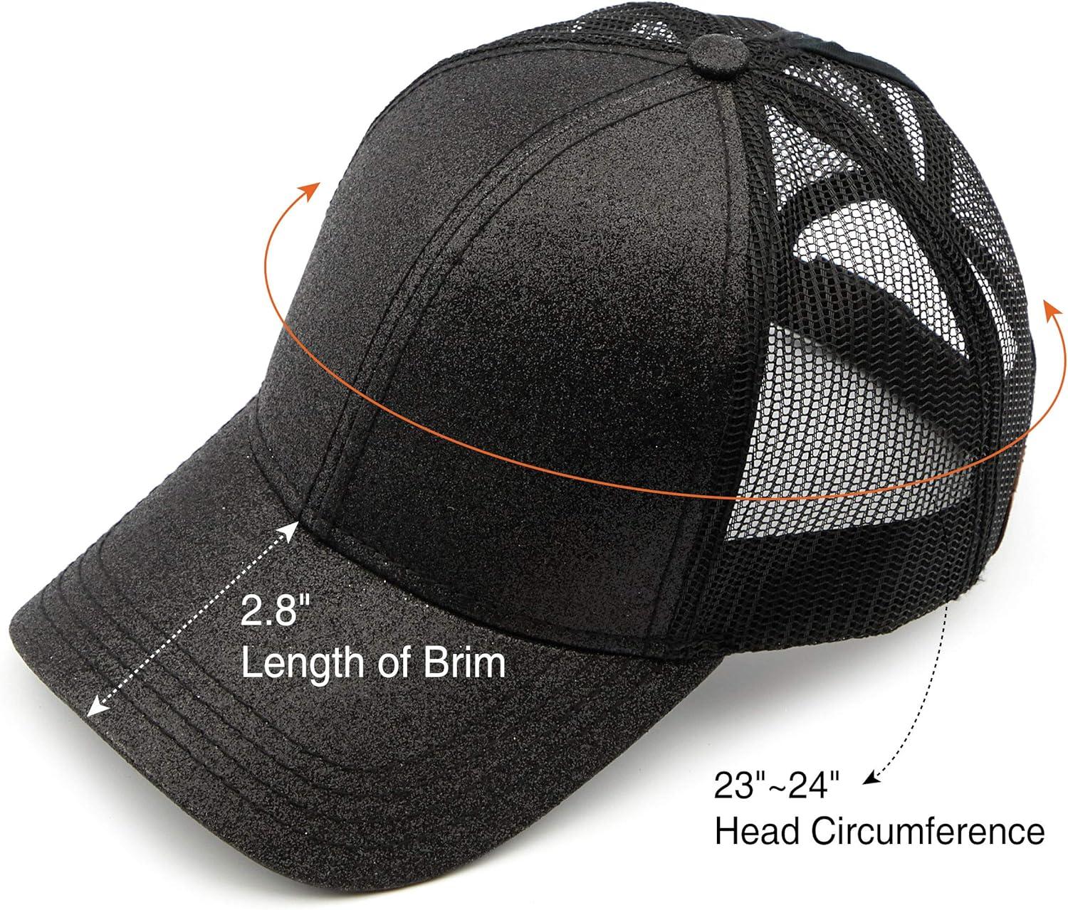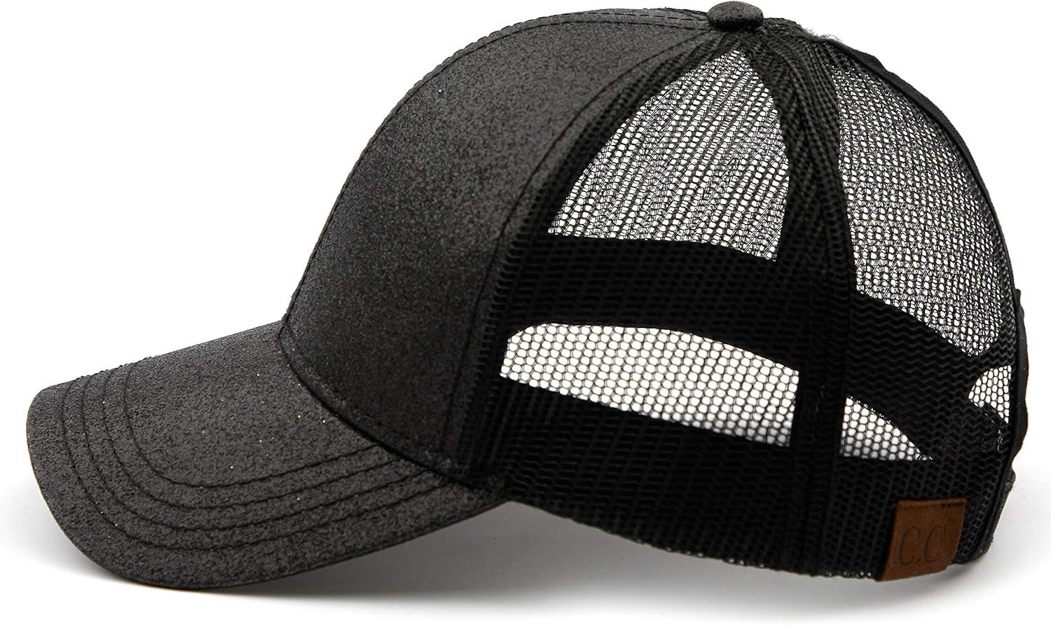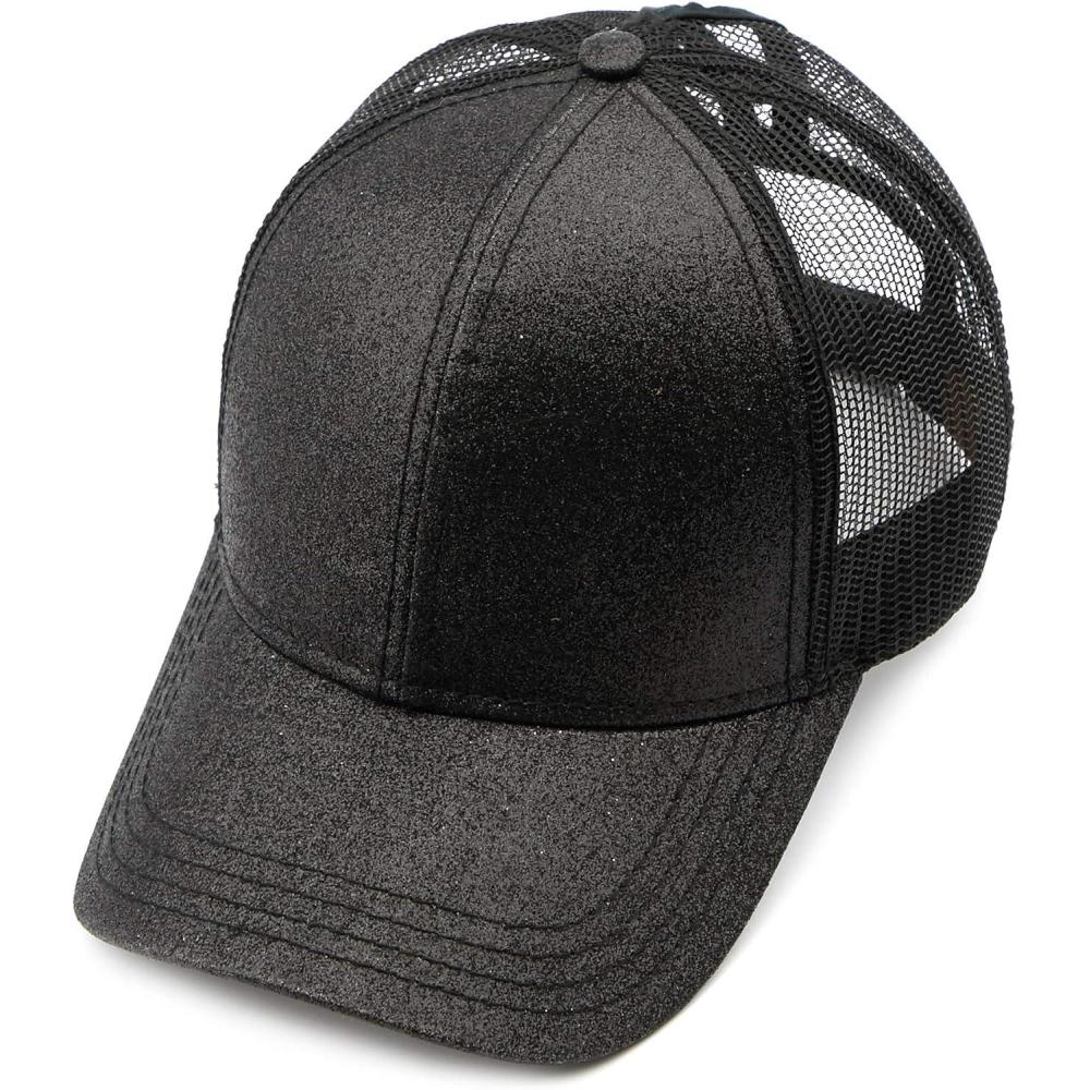 C.C Hatsandscarf Ponytail caps Messy Buns Trucker Plain Baseball Cap (BT-6)(Glitter-black)