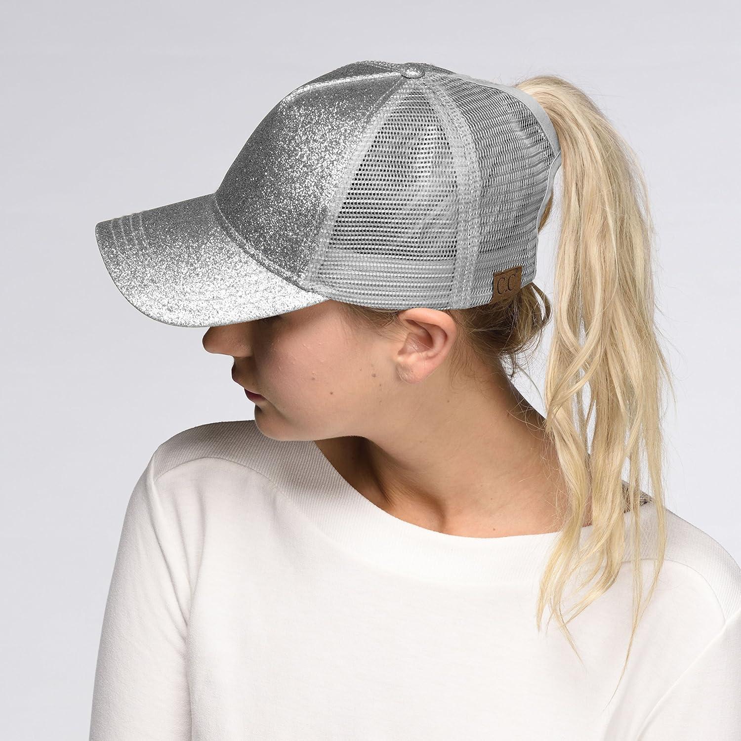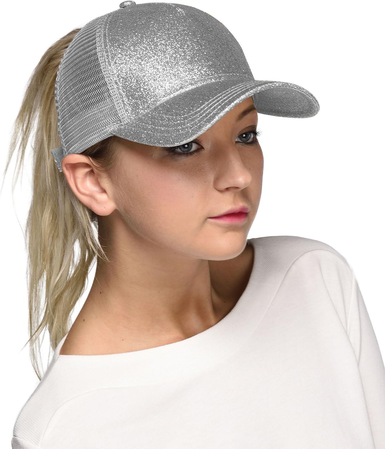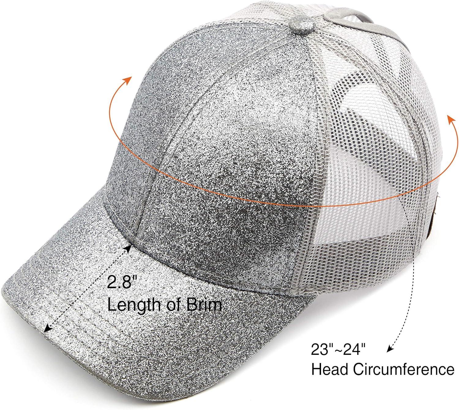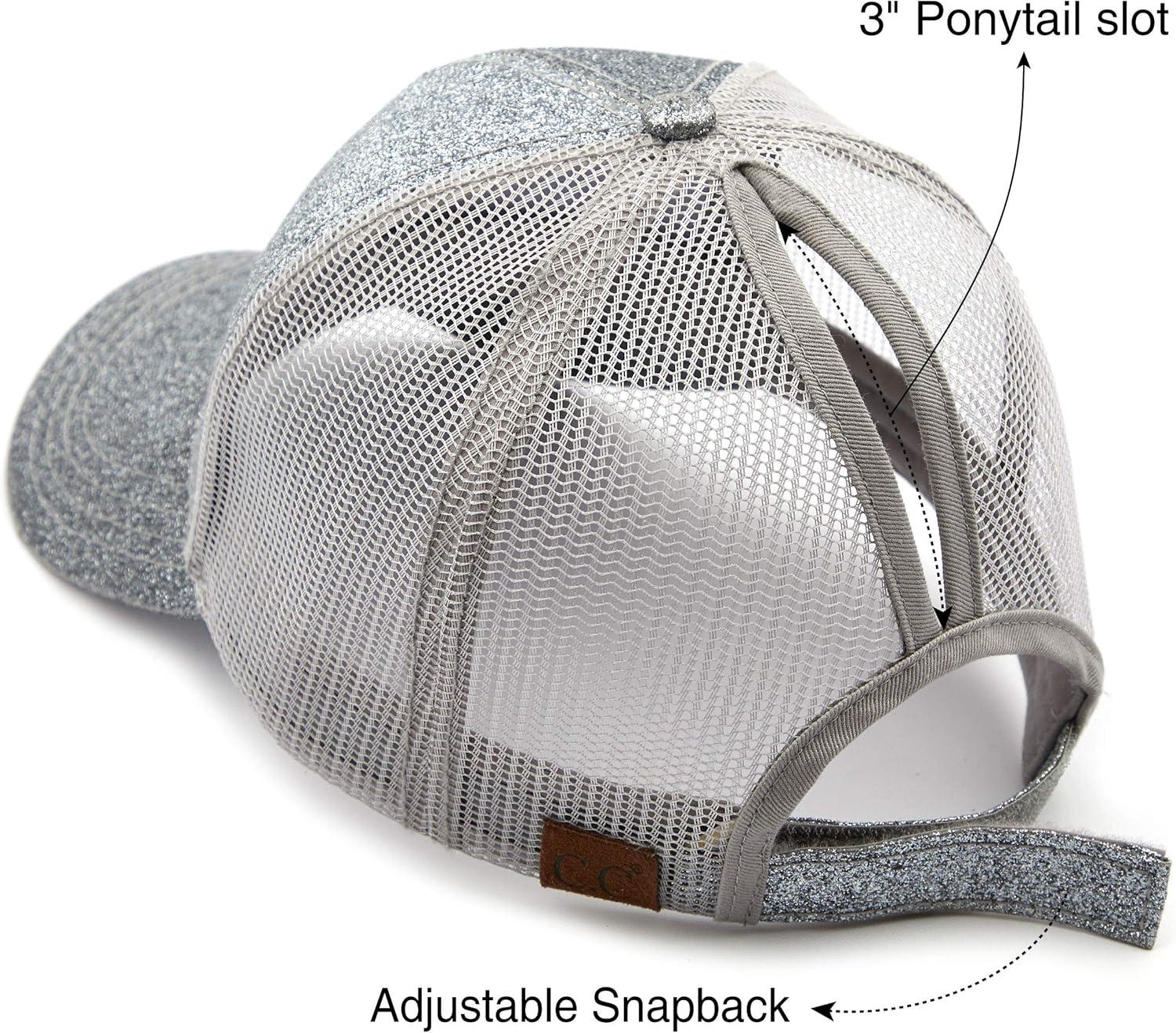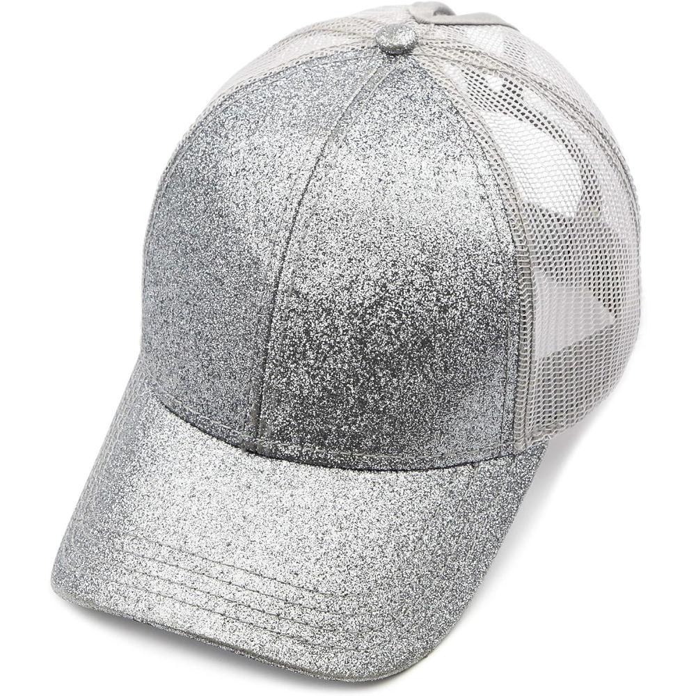 C.C Hatsandscarf Ponytail caps Messy Buns Trucker Plain Baseball Cap (BT-6)(Glitter-grey)