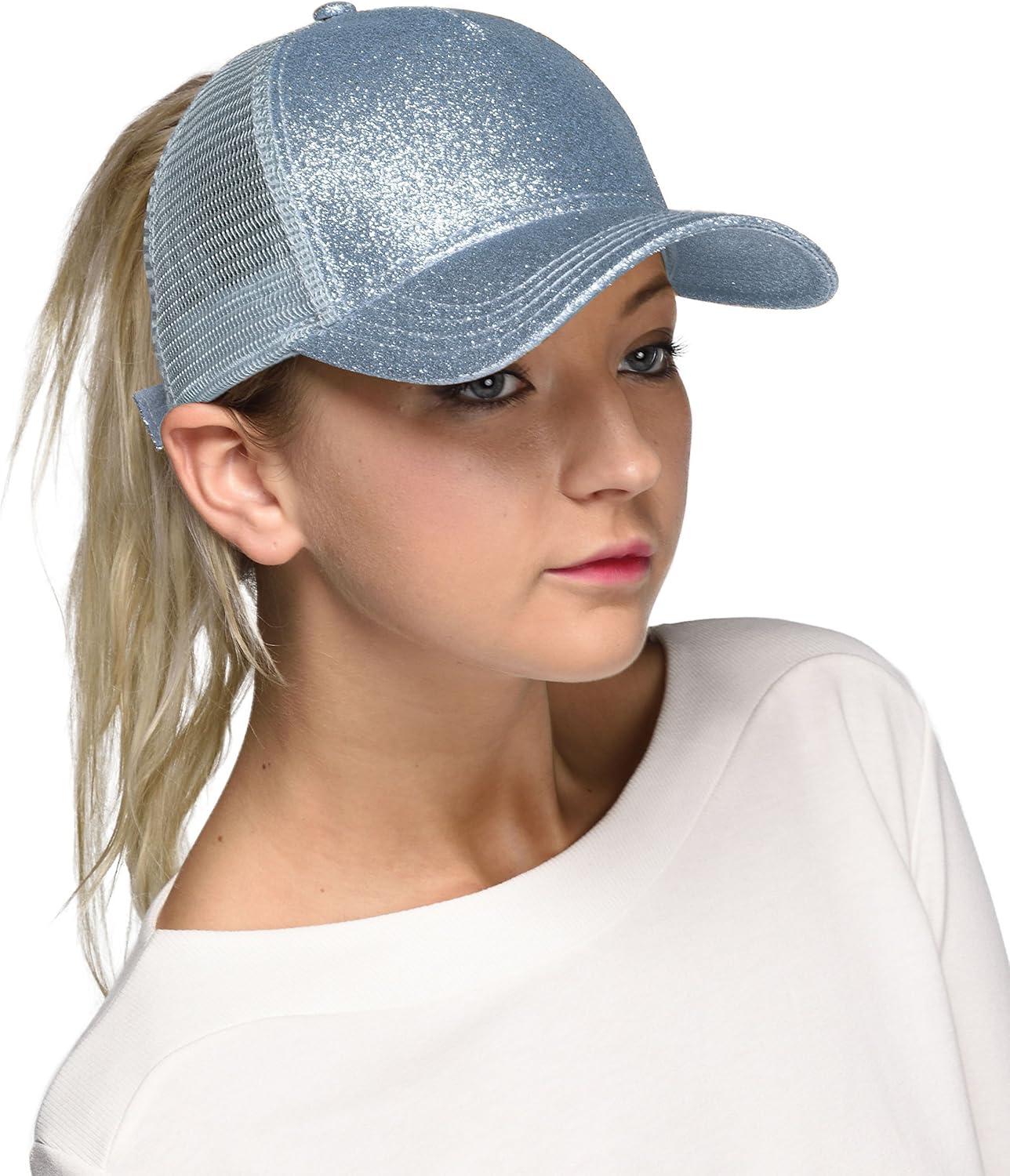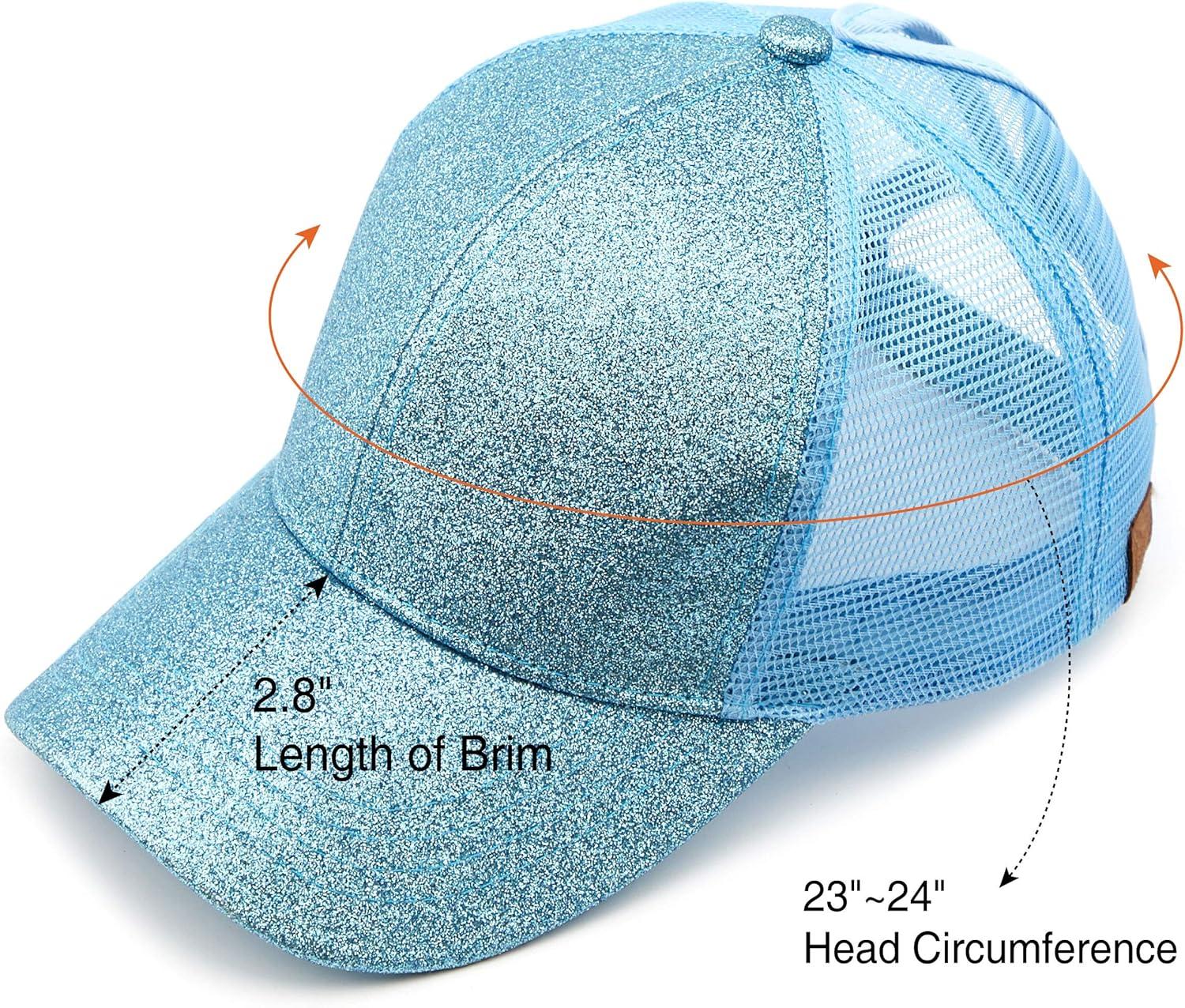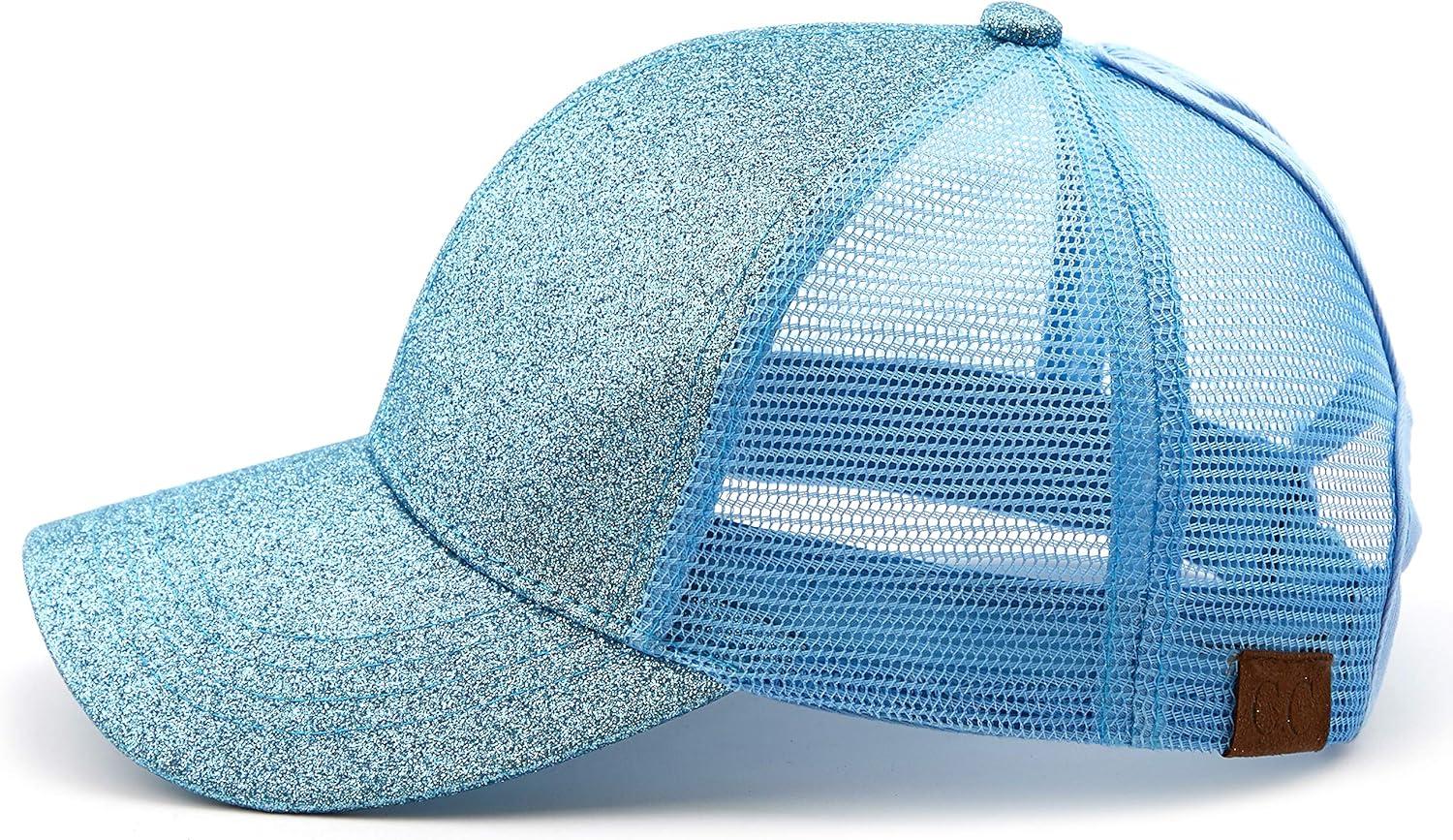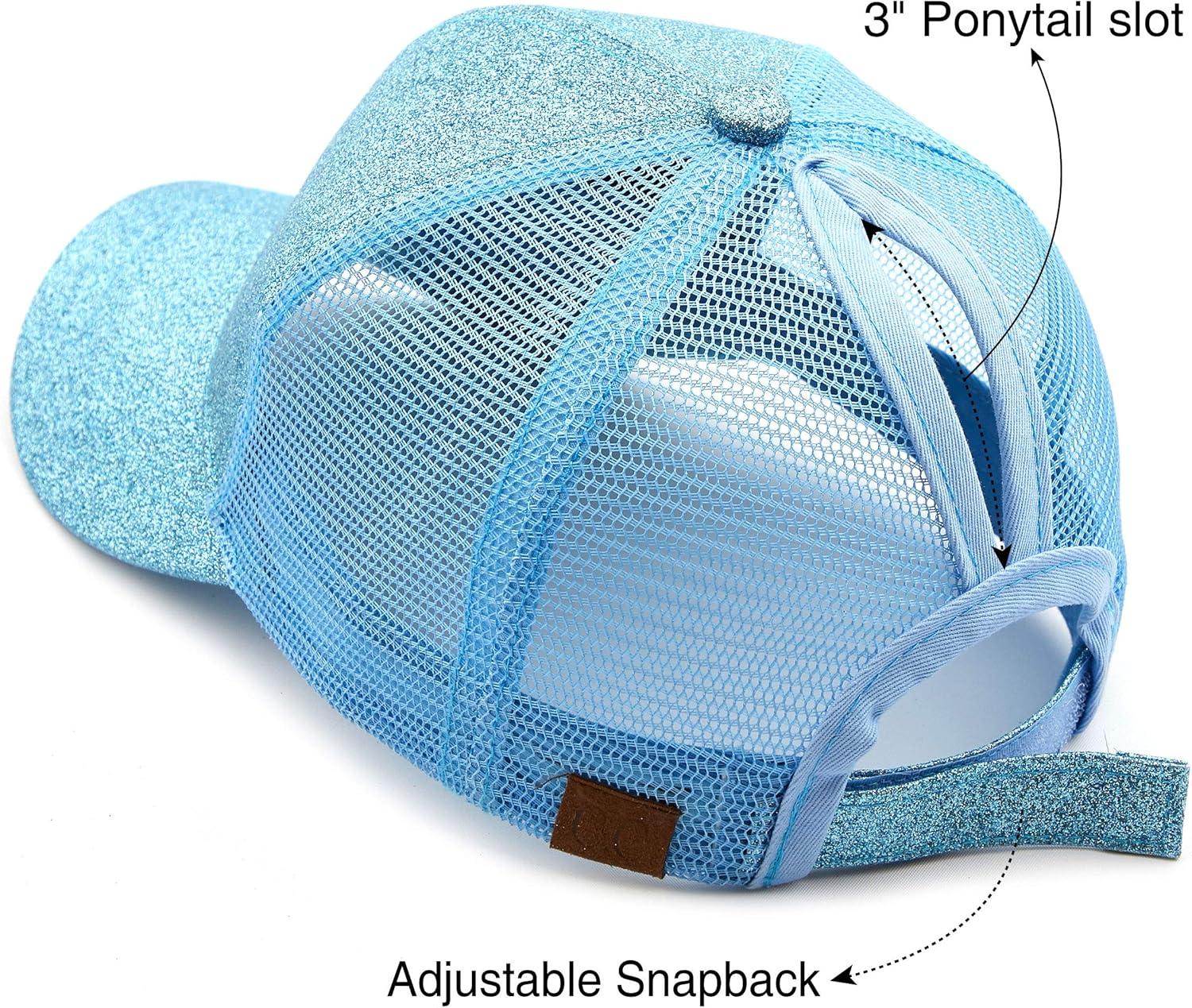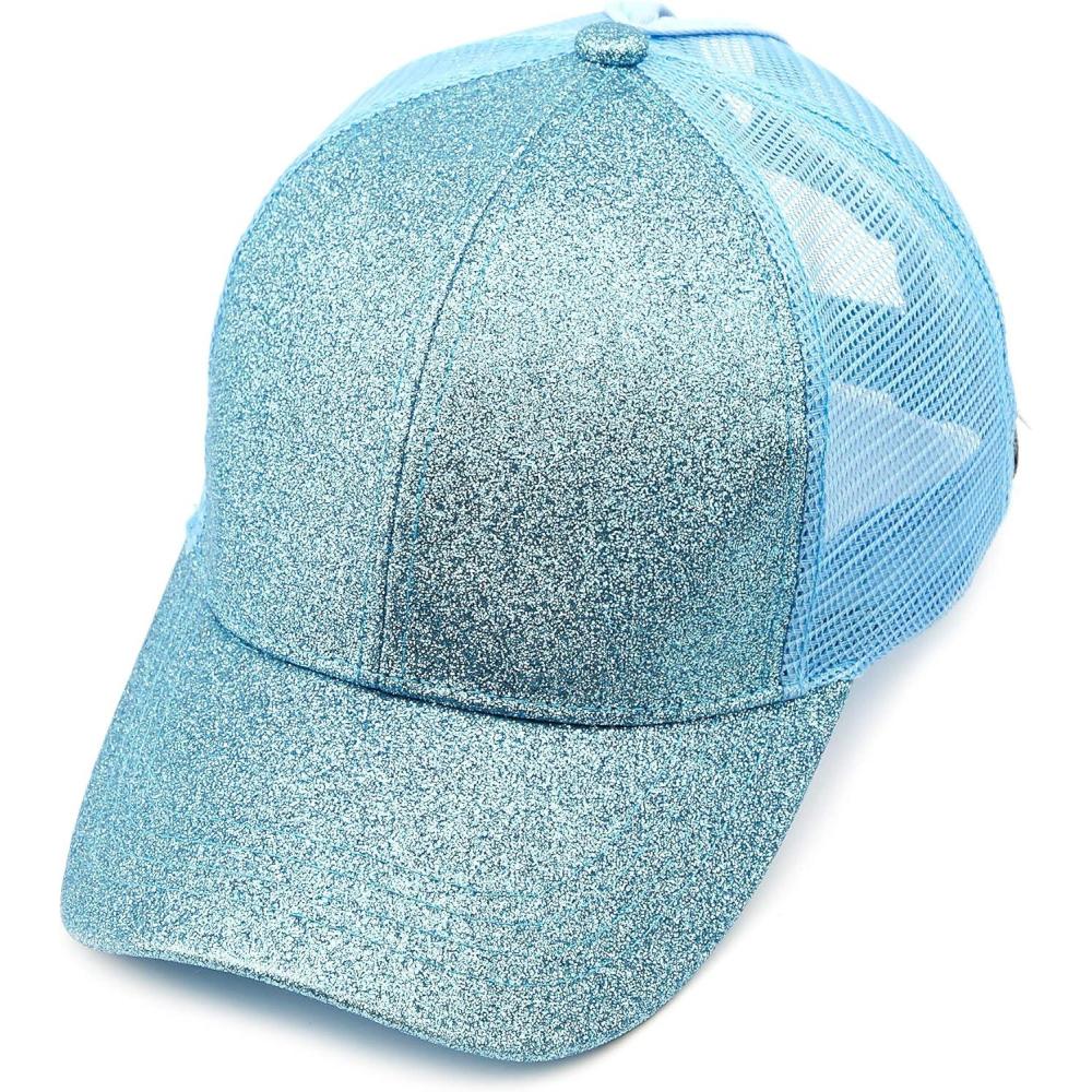 C.C Hatsandscarf Ponytail caps Messy Buns Trucker Plain Baseball Cap (BT-6)(Glitter-lt.blue)