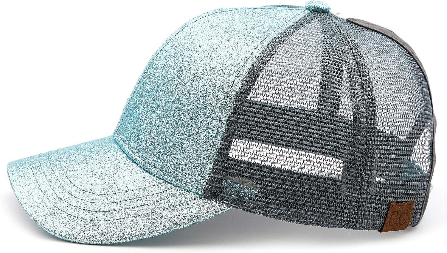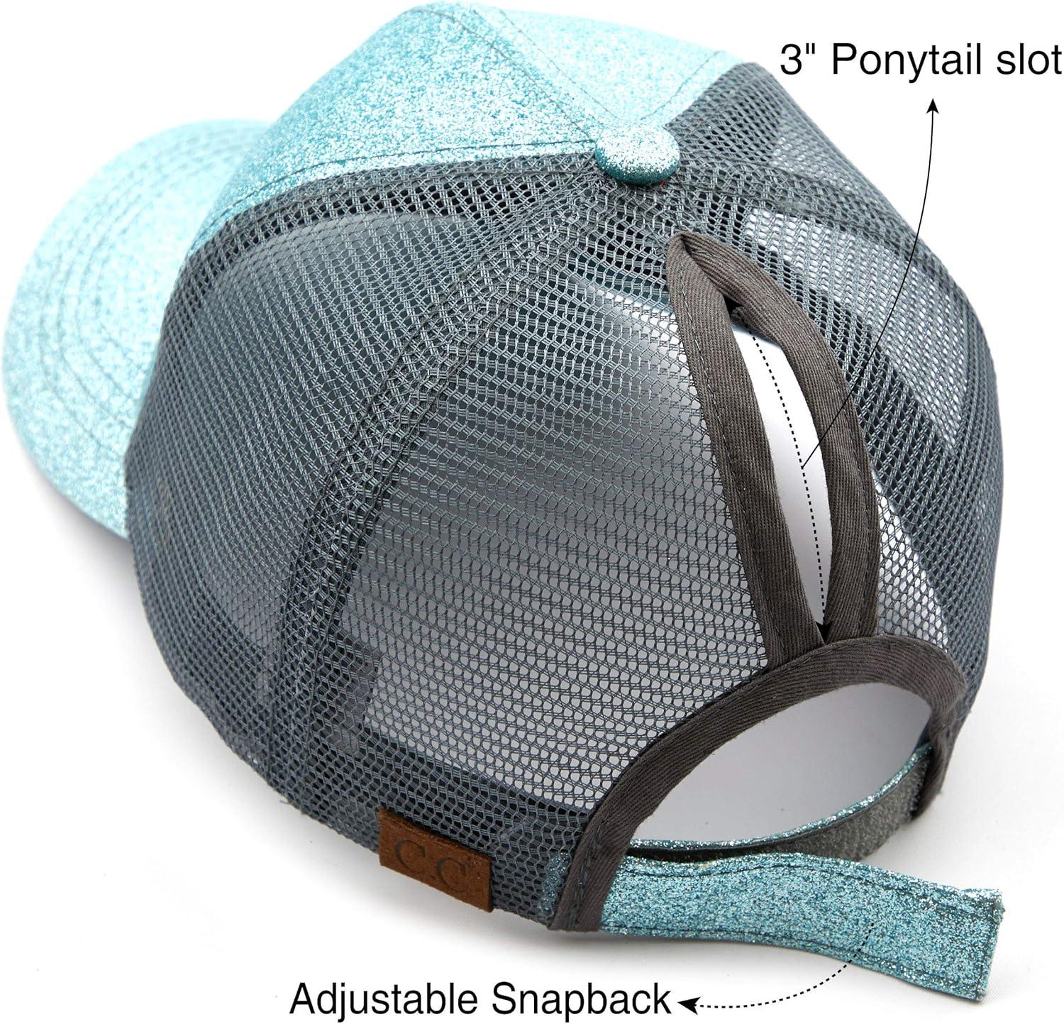 C.C Hatsandscarf Ponytail caps Messy Buns Trucker Plain Baseball Cap (BT-6)(Glitter-mint)