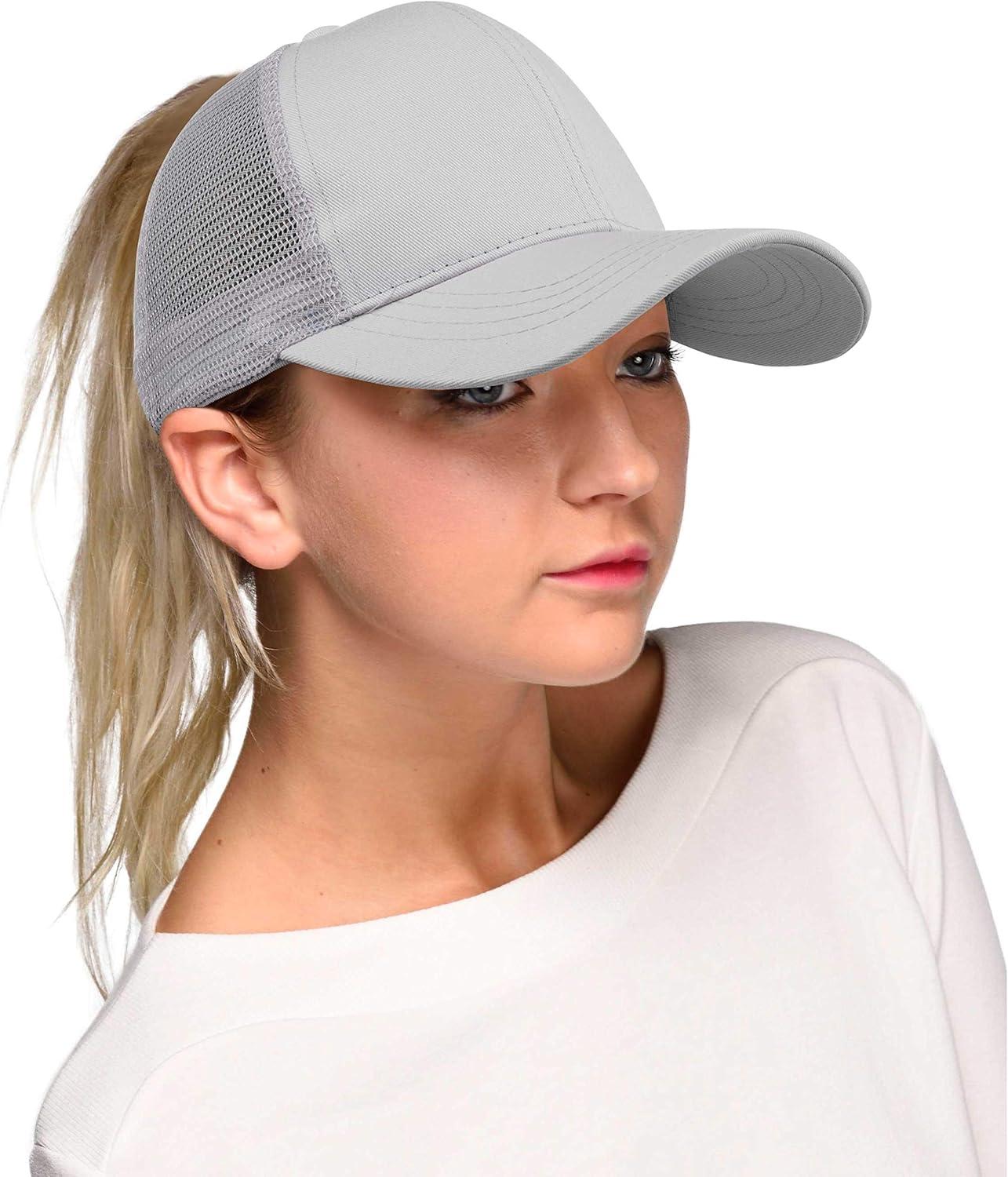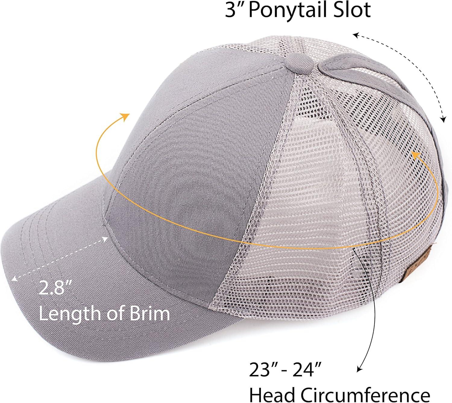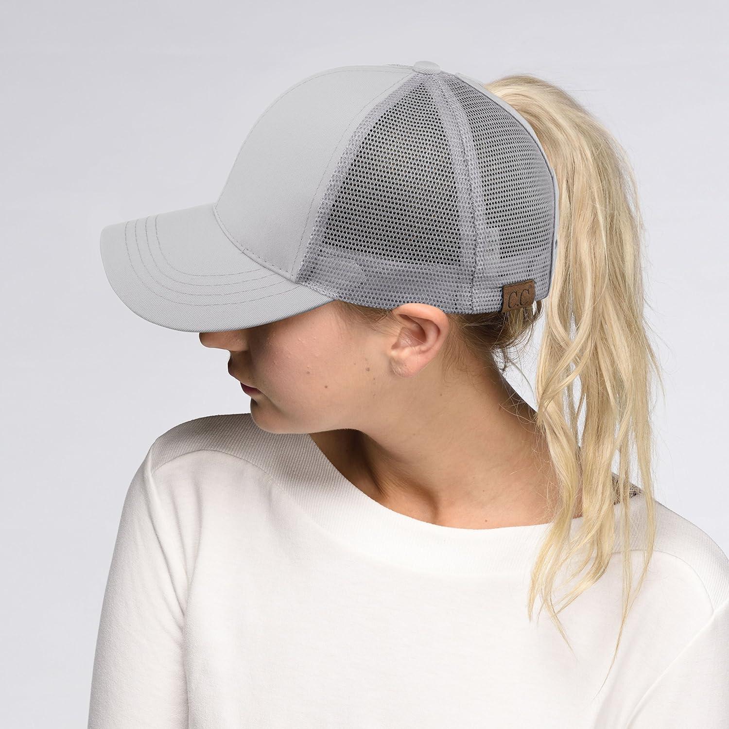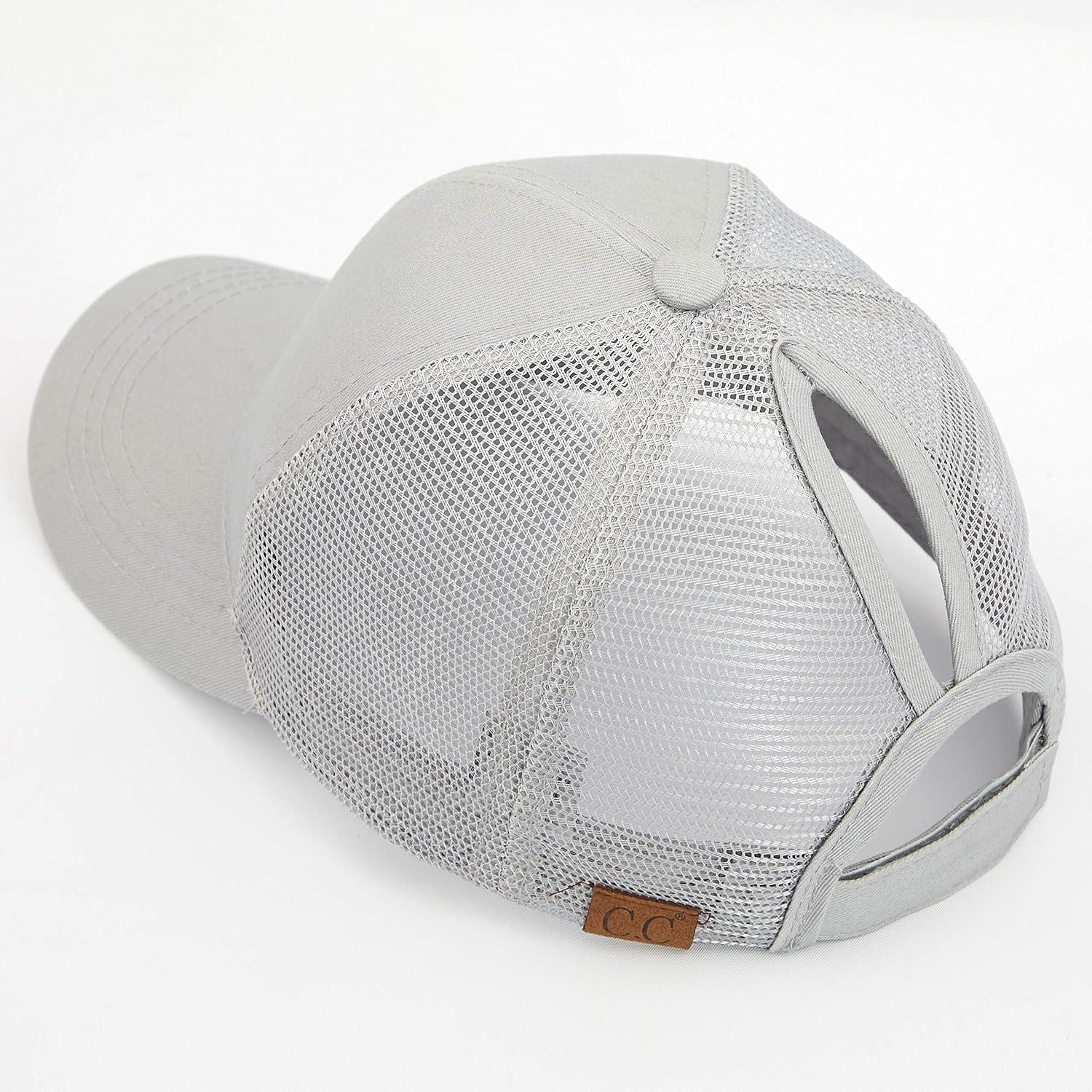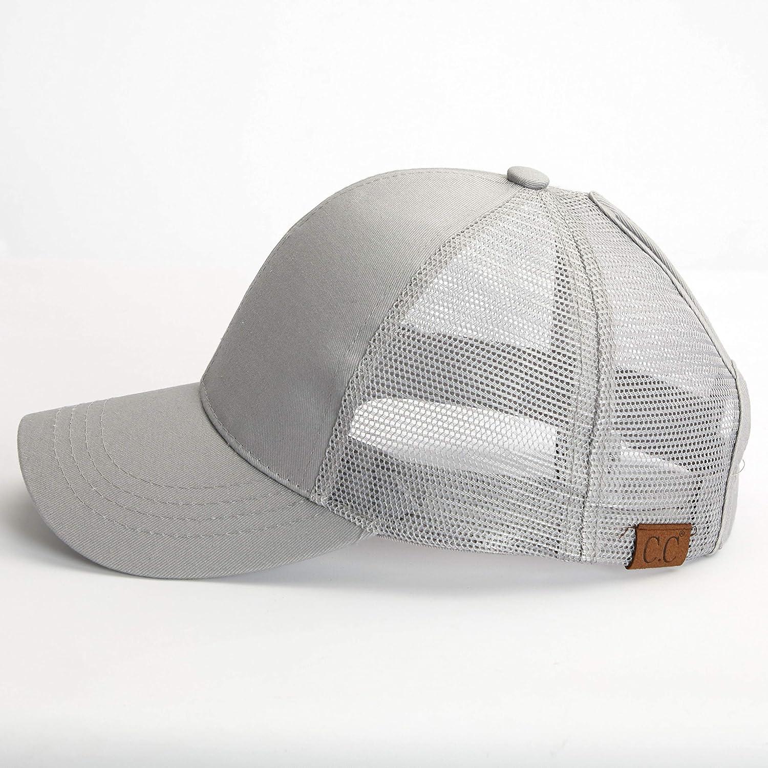 C.C Hatsandscarf Ponytail caps Messy Buns Trucker Plain Baseball Cap (BT-6)(Grey)