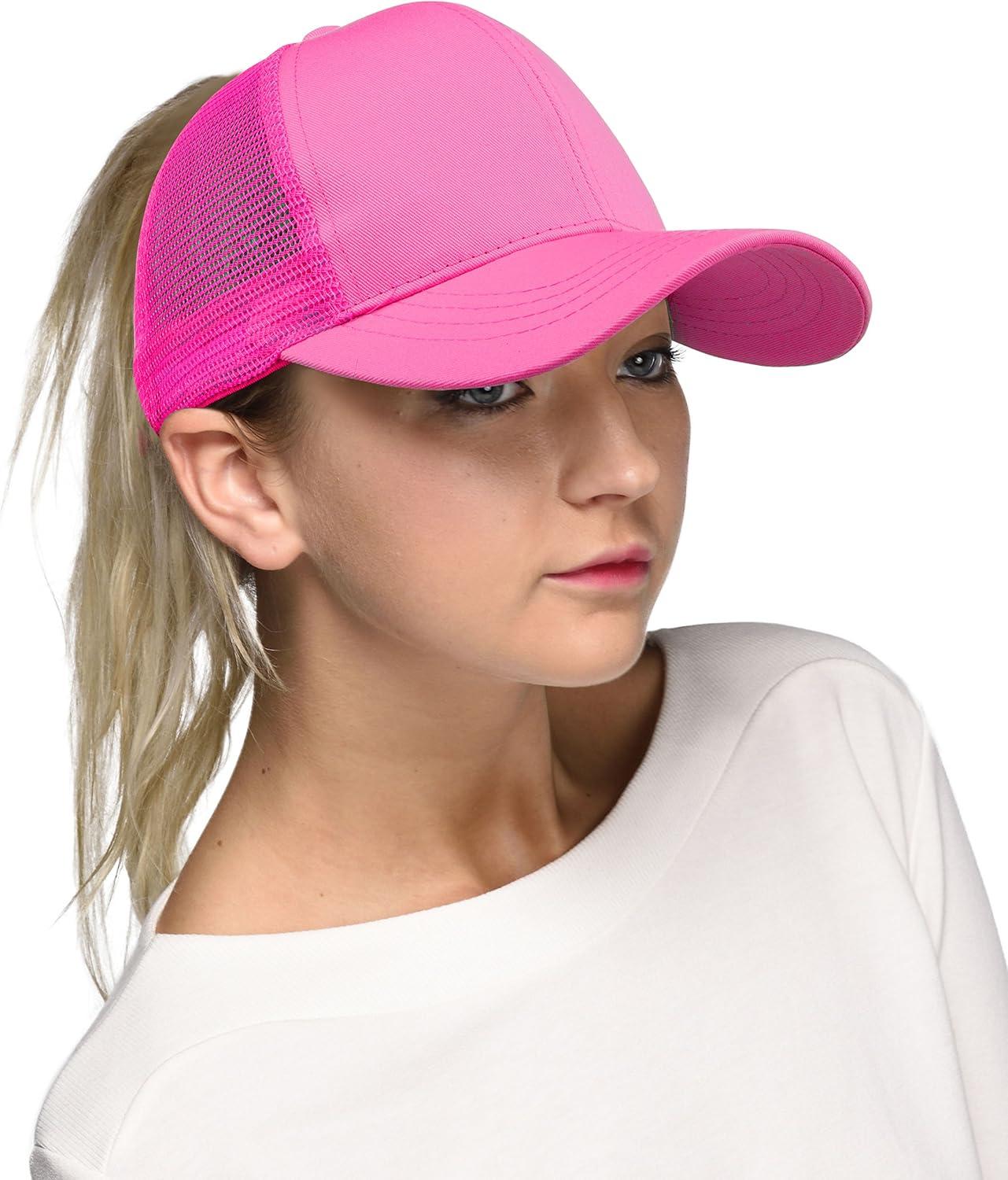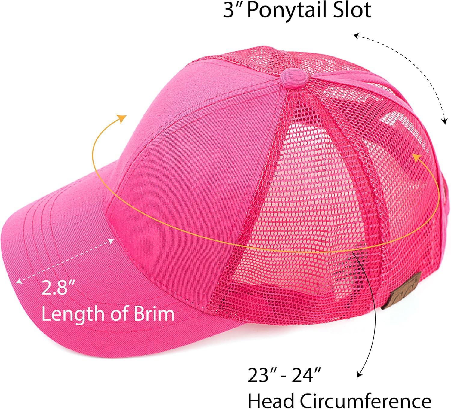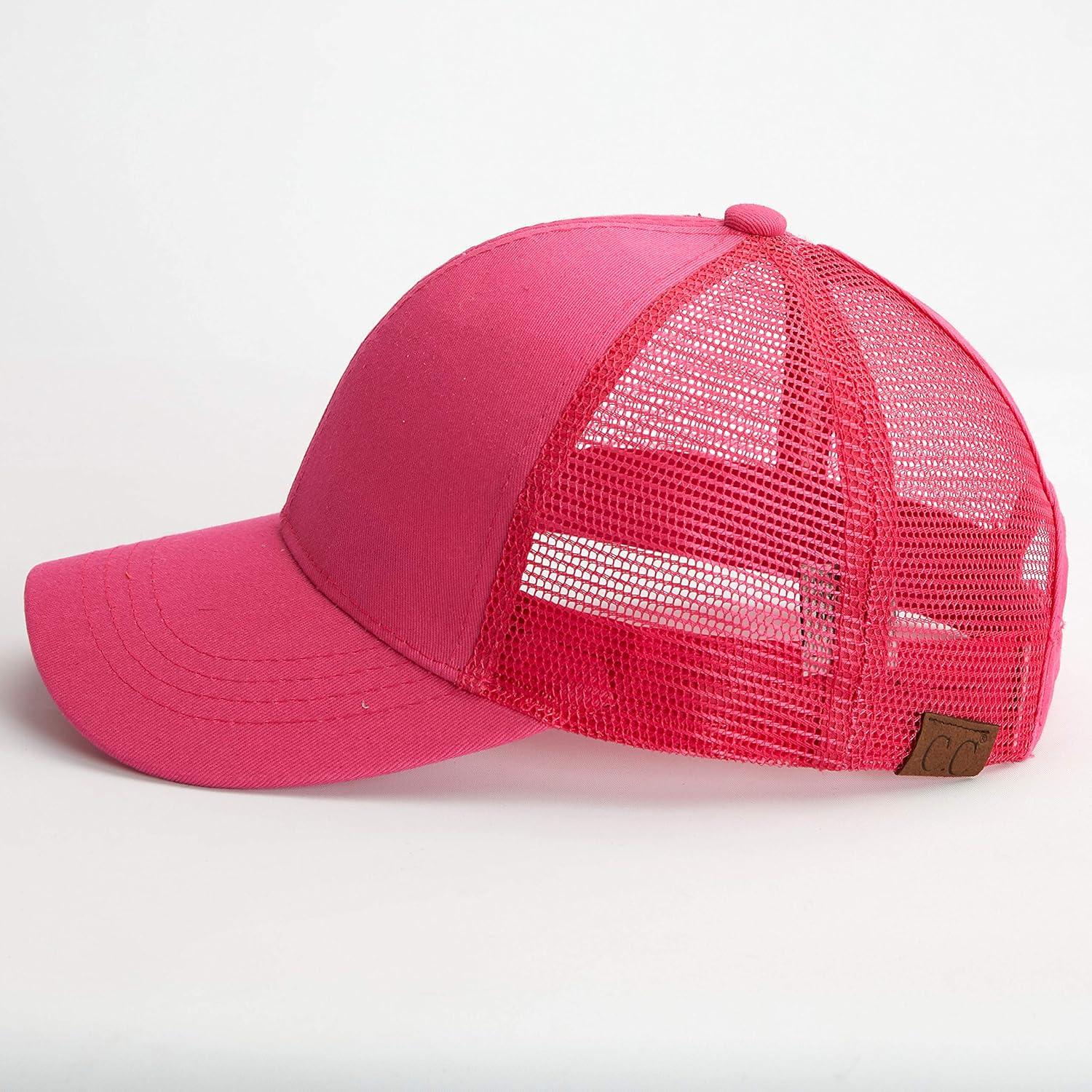 C.C Hatsandscarf Ponytail caps Messy Buns Trucker Plain Baseball Cap (BT-6)(Hot Pink)