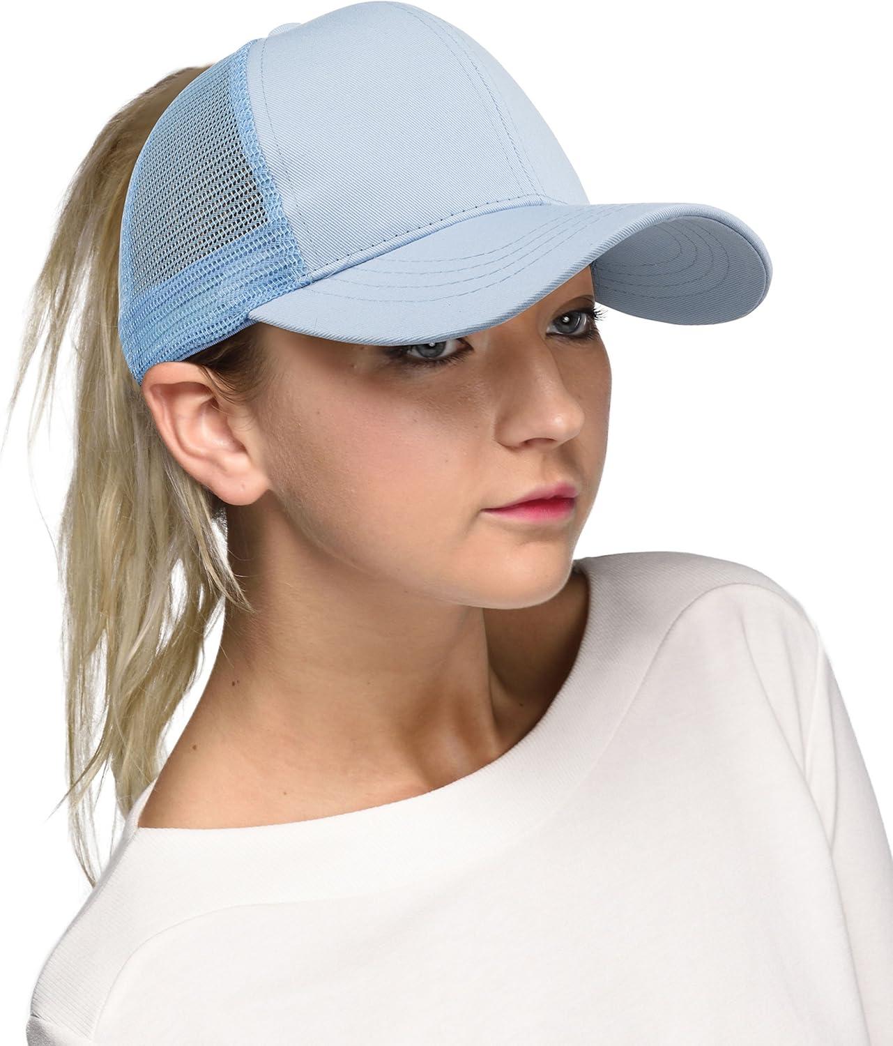 Get more for your money with our exclusive bundle deals on C.C Hatsandscarf Ponytail caps Messy Buns Trucker Plain Baseball Cap (BT-6)(Lt. Blue) and accessories.