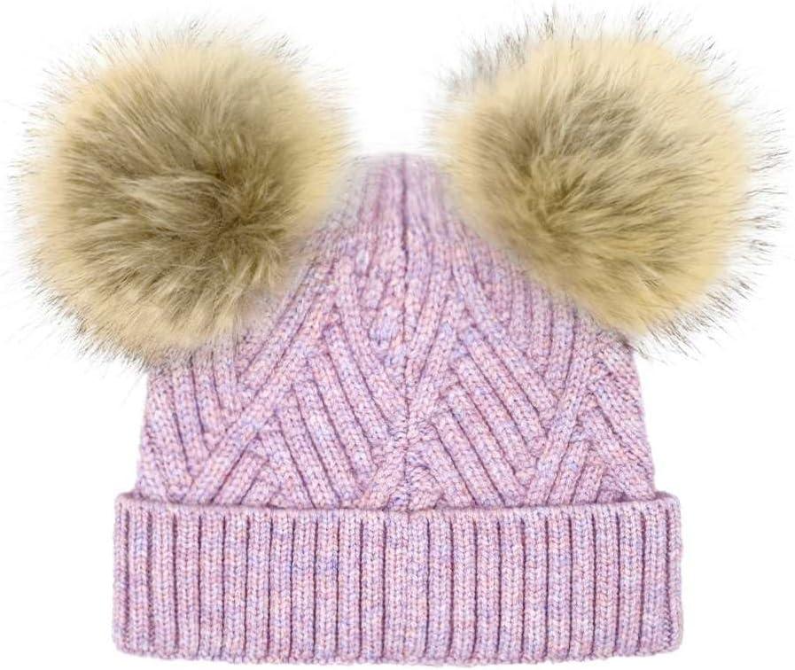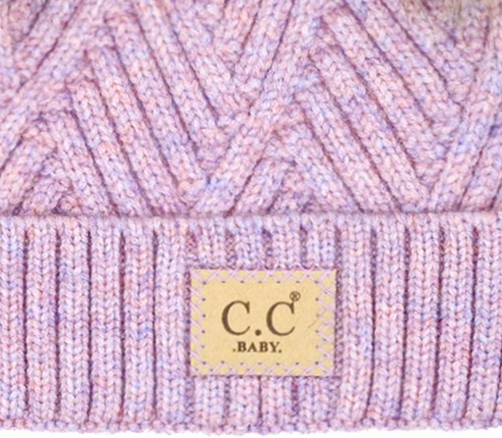 C.C Kids' Babies' Soft Stretch Cable Knit Faux Fur Pom Pom Beanie Hat(Criss Cross Lavender Mix)