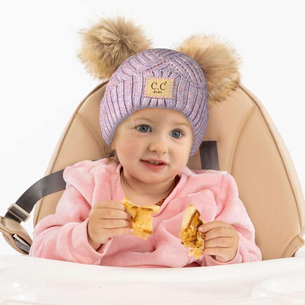 imageCC Kids Babies Soft Stretch Cable Knit Faux Fur Pom Pom Beanie HatCriss Cross Lavender Mix