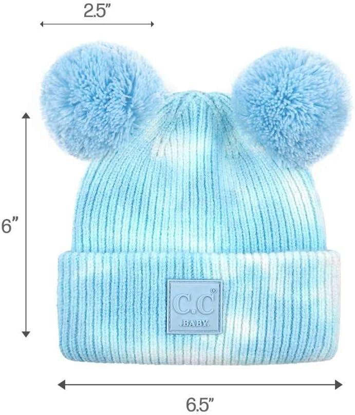 C.C Kids’ Babies’ Soft Stretch Cable Knit Faux Fur Pom Pom Beanie Hat(Tie Dye Baby Blue/White)