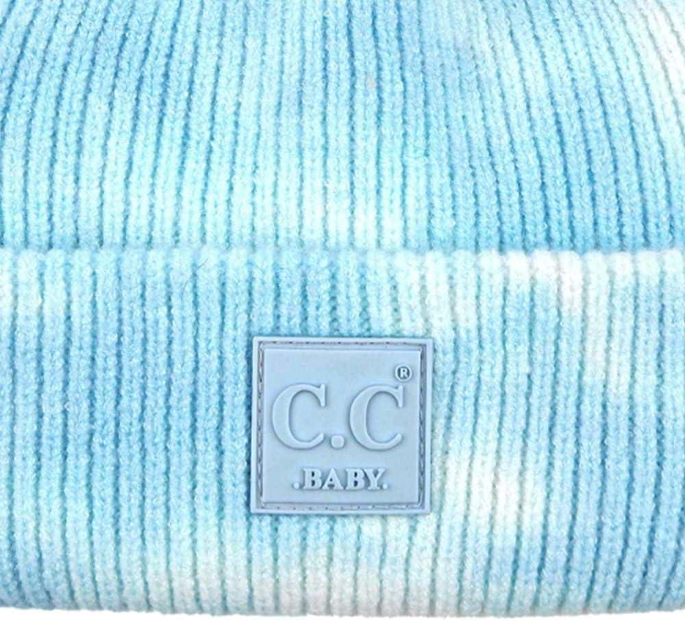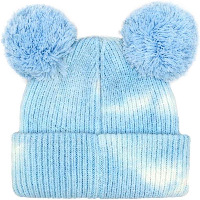 imageCC Kids Babies Soft Stretch Cable Knit Faux Fur Pom Pom Beanie HatTie Dye Baby BlueWhite