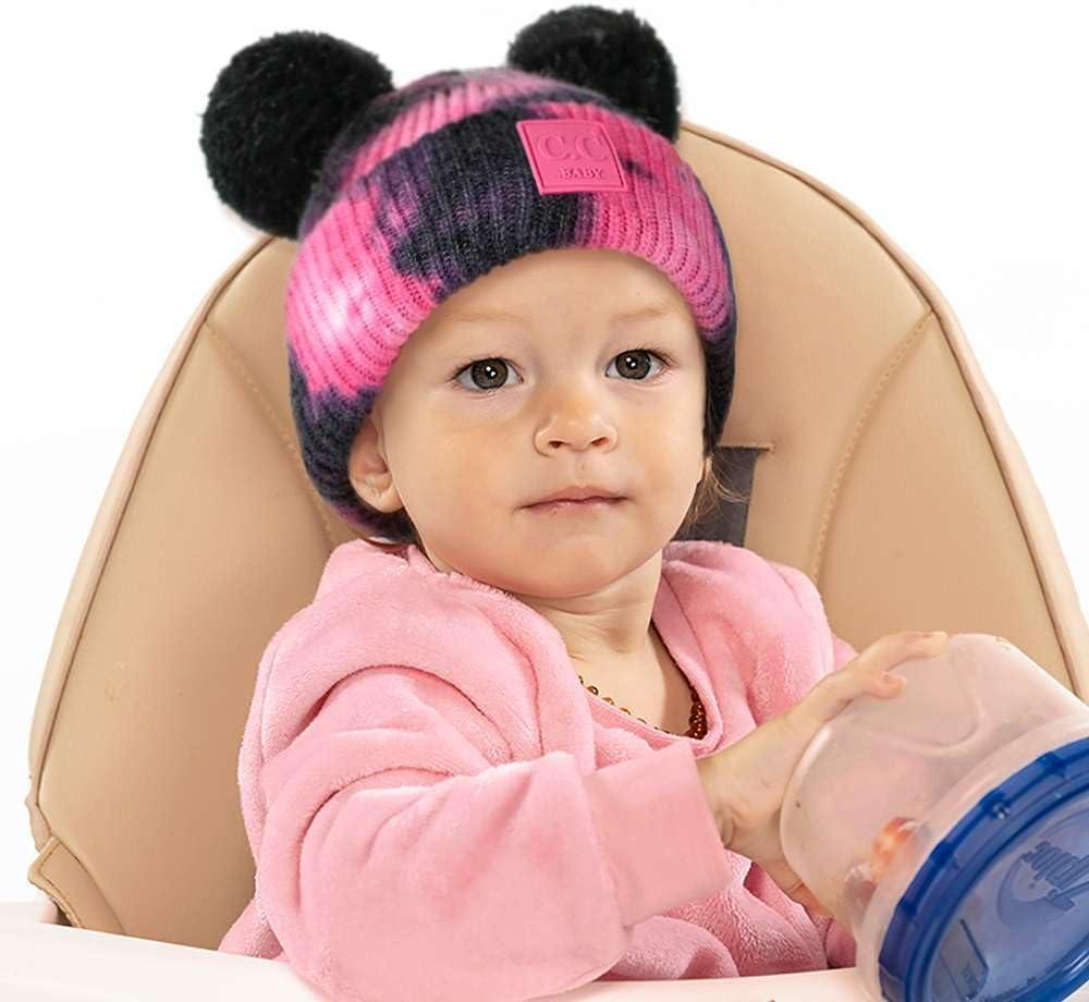 imageCC Kids Babies Soft Stretch Cable Knit Faux Fur Pom Pom Beanie HatTie Dye Baby PinkWhite