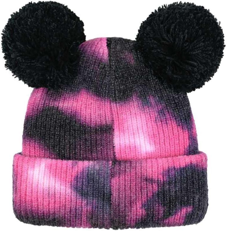 imageCC Kids Babies Soft Stretch Cable Knit Faux Fur Pom Pom Beanie HatTie Dye BlackHot Pink
