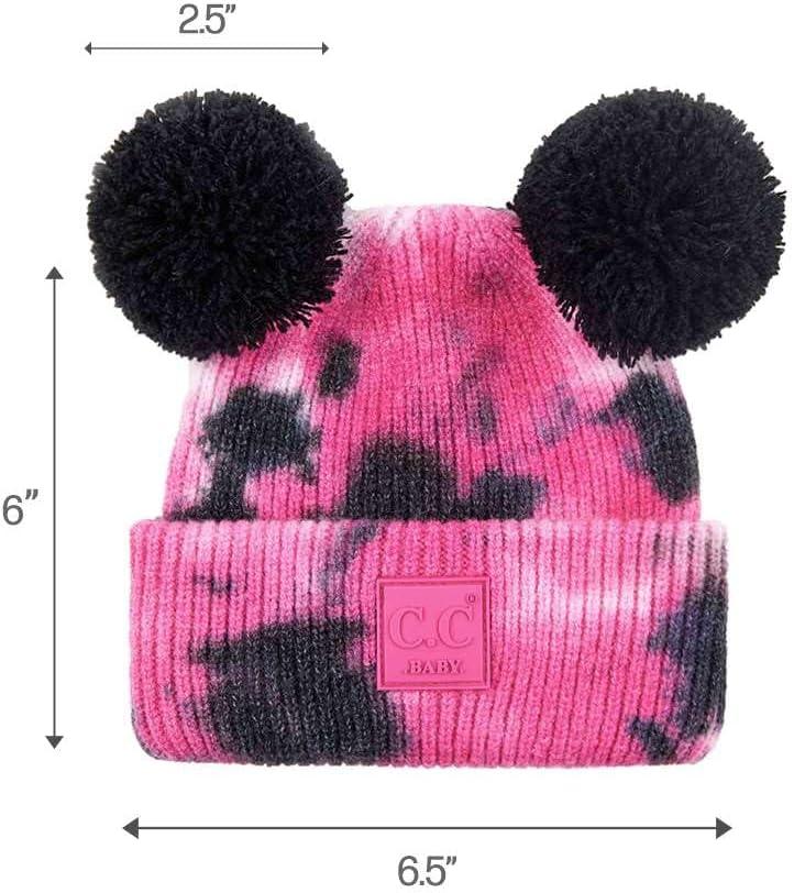 C.C Kids’ Babies’ Soft Stretch Cable Knit Faux Fur Pom Pom Beanie Hat(Tie Dye Black/Hot Pink)